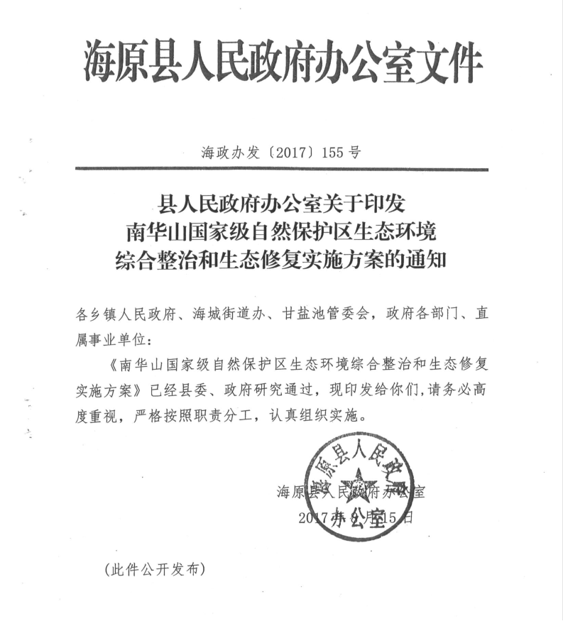 南华山国家级自然保护区生态环境综合整治和生态修复实施方案的通知.pdf