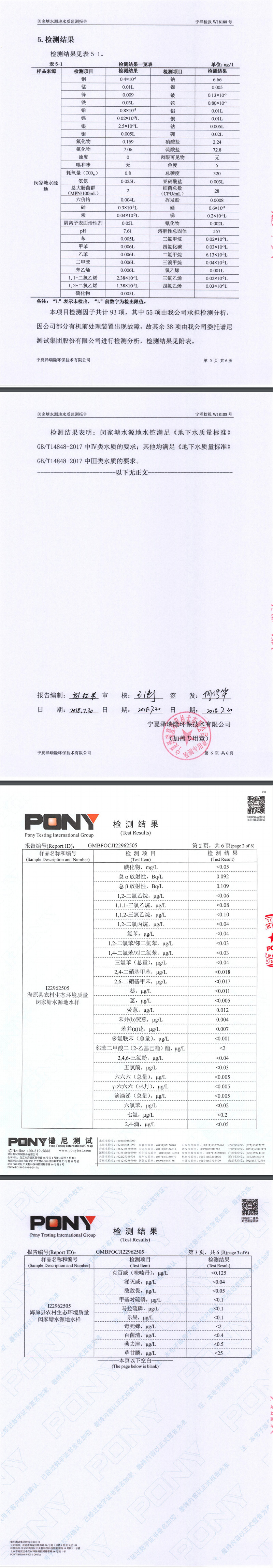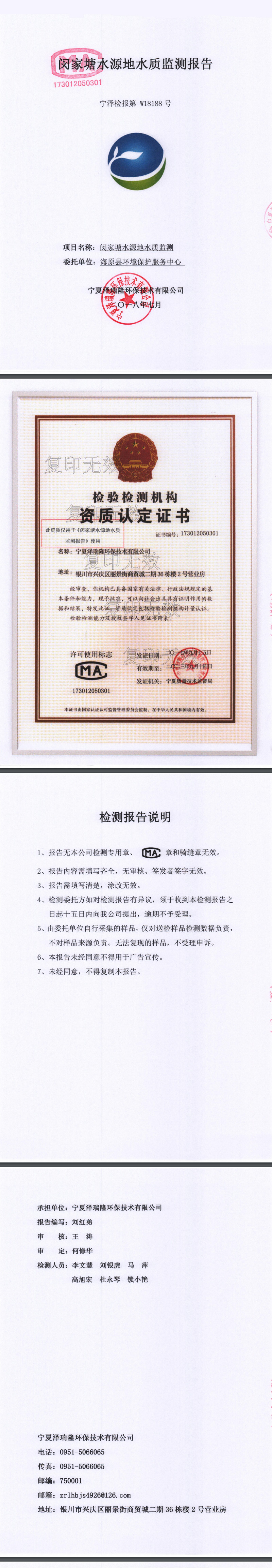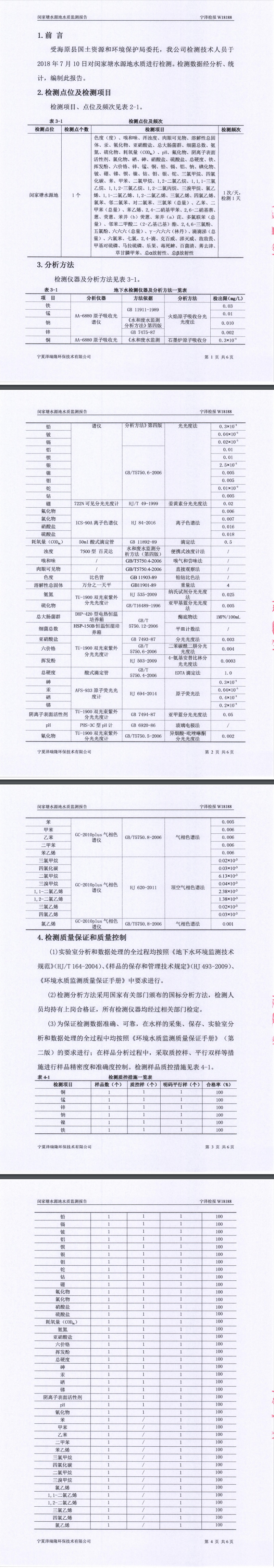 闵家塘水源地水质监测报告