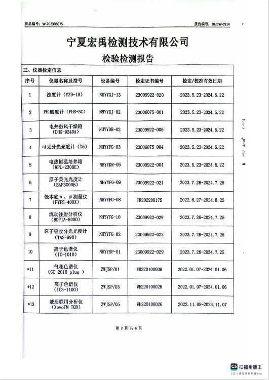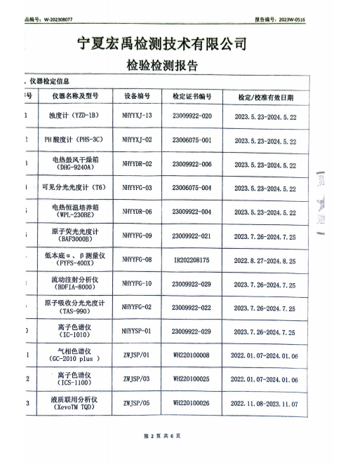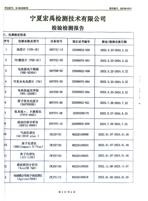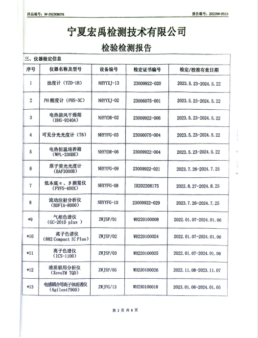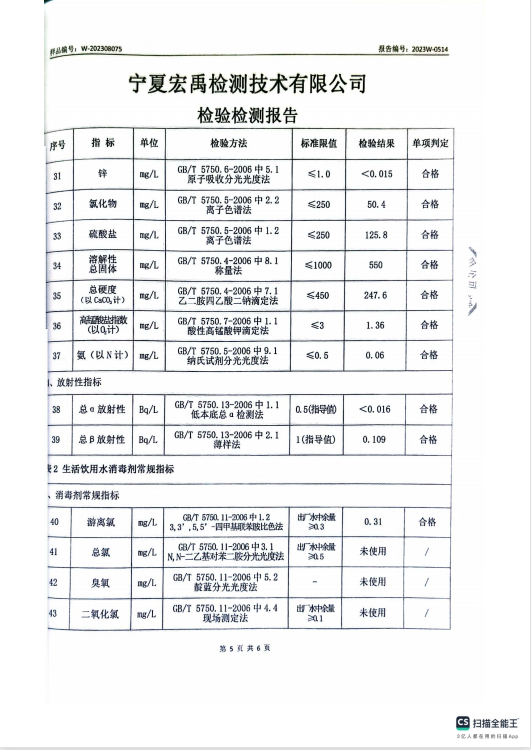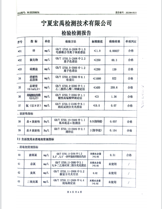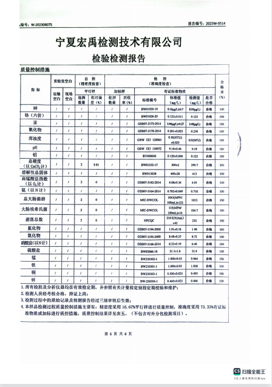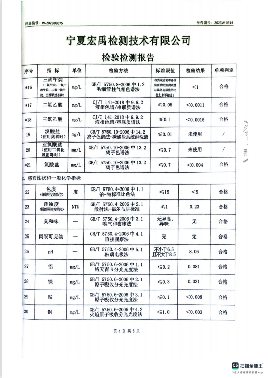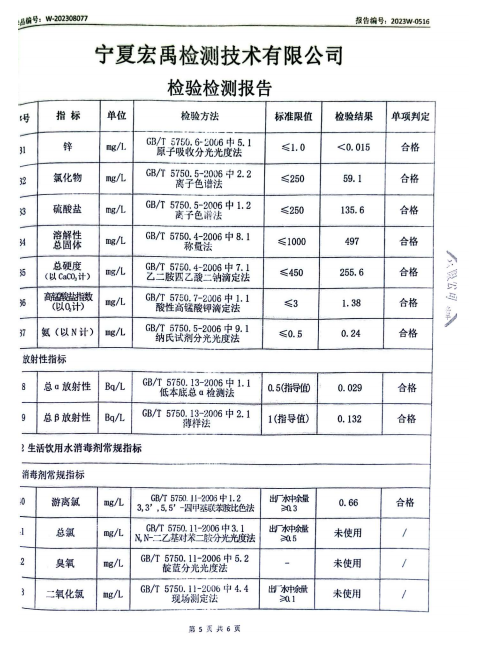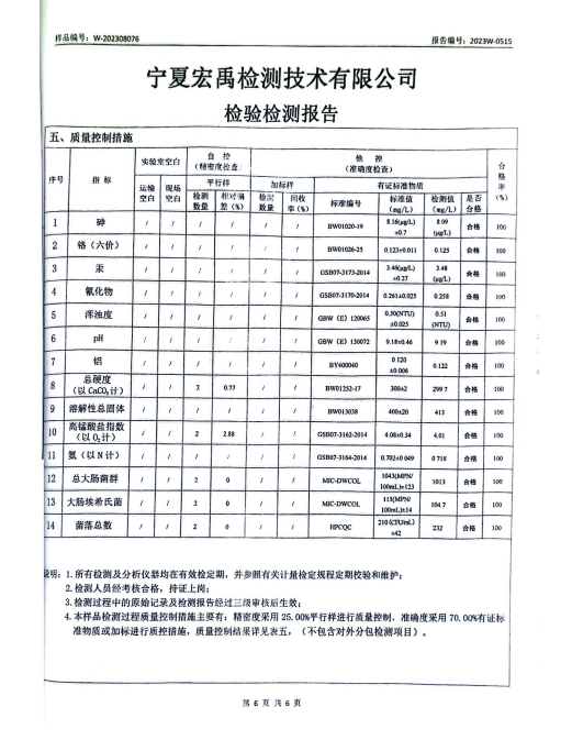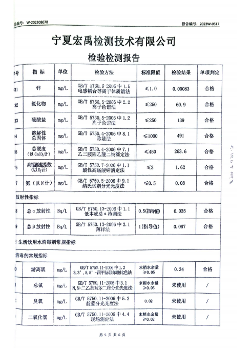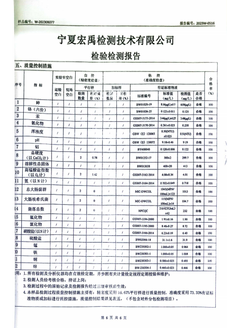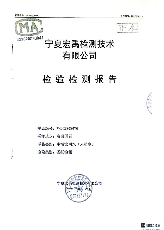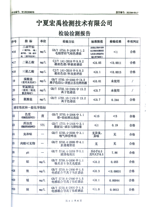 海原县2023年8月份自来水水质检验检测报告