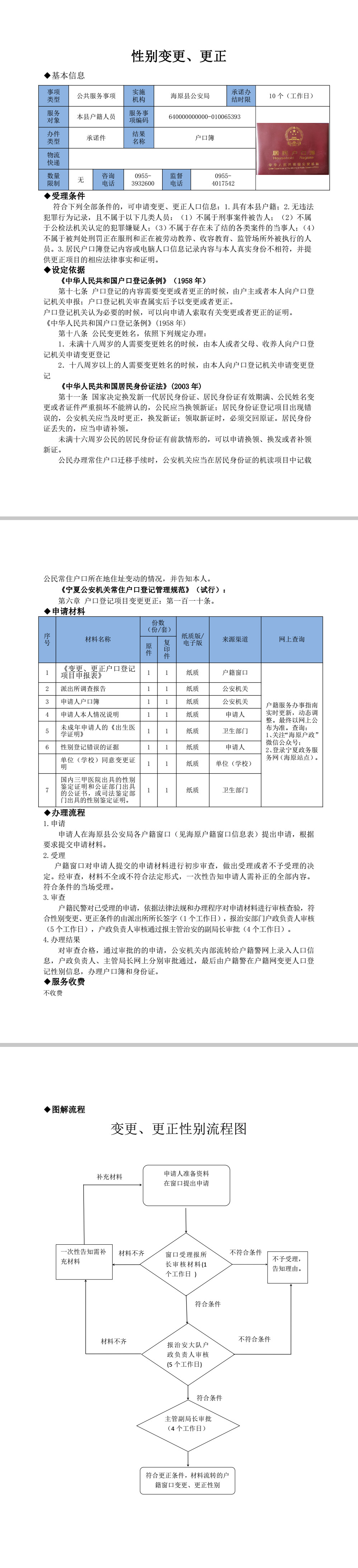 性别变更、更正办事指南