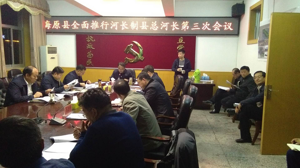 2017年11月14日,海原县召开全面推行河长制工作总河长第三次会议。市委常委、县委书记、县总河长徐海宁主持会议,县副总河长、各县级河长和河长制主要责任单位、清水河沿线四乡镇总河长参加了会议,县人大、政协主要领导应邀列席会议。