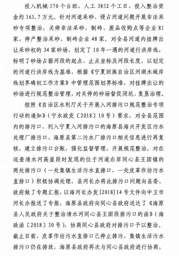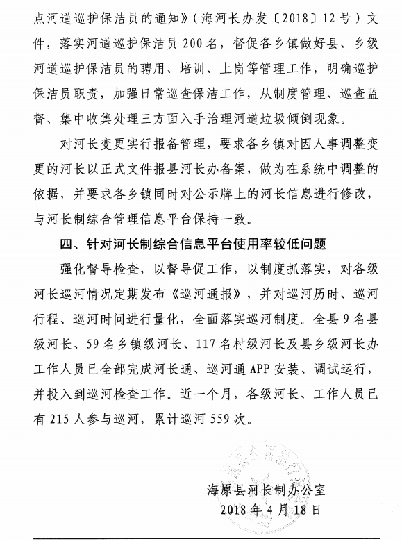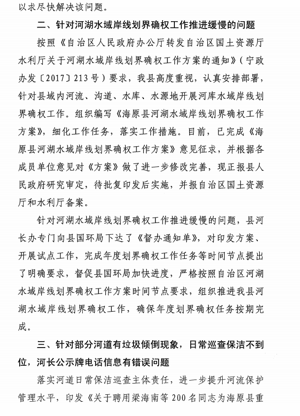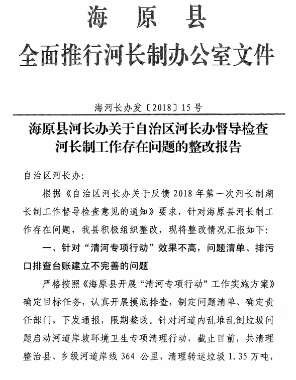 海原县河长办关于自治区河长办督导检查河长制工作存在问题的整改报告