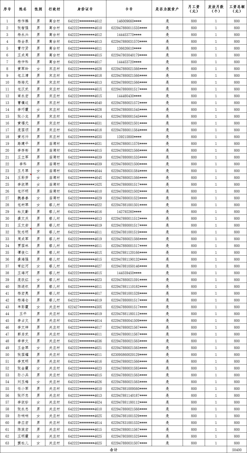 海原县关庄乡2023年乡村振兴公益性岗位9月份工资人员花名册