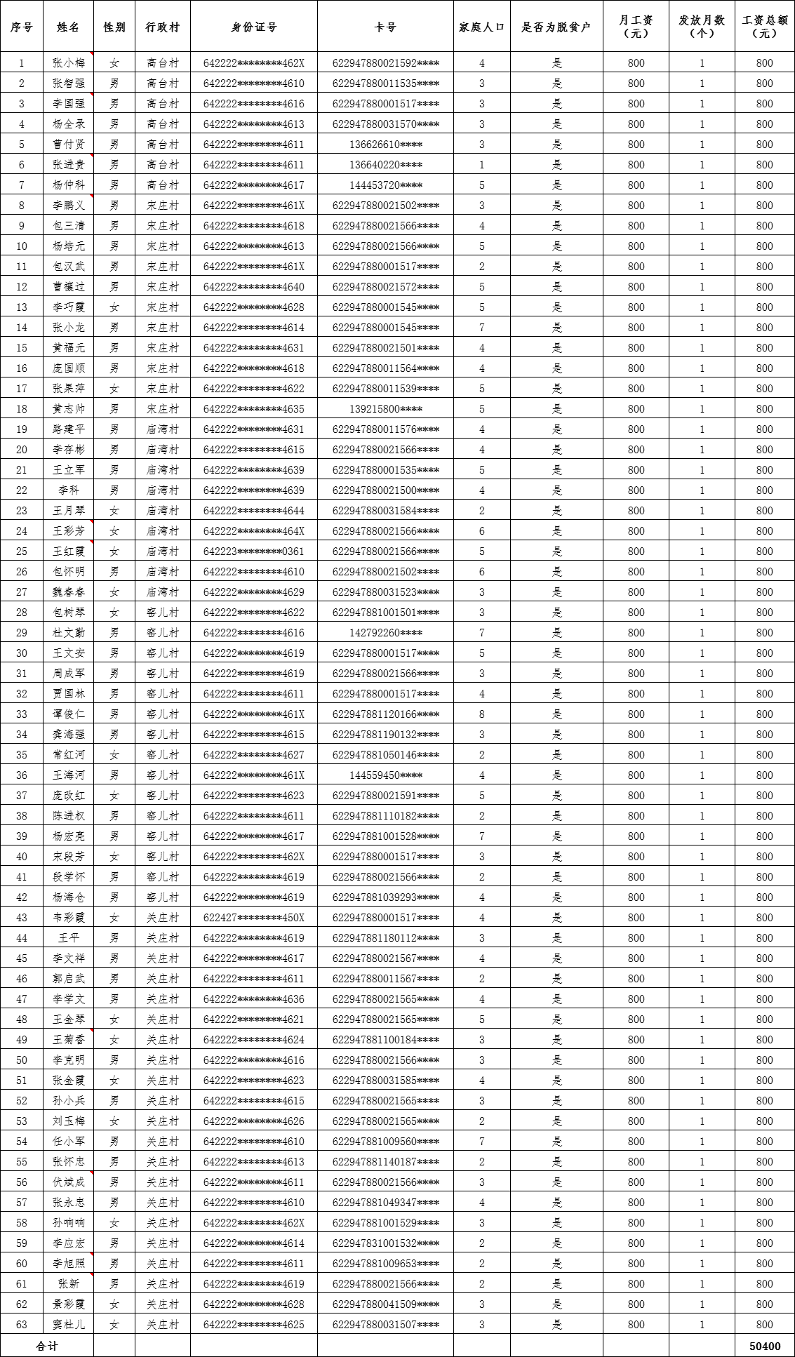 海原县关庄乡2024年乡村振兴公益性岗位8月份工资人员公示花名册
