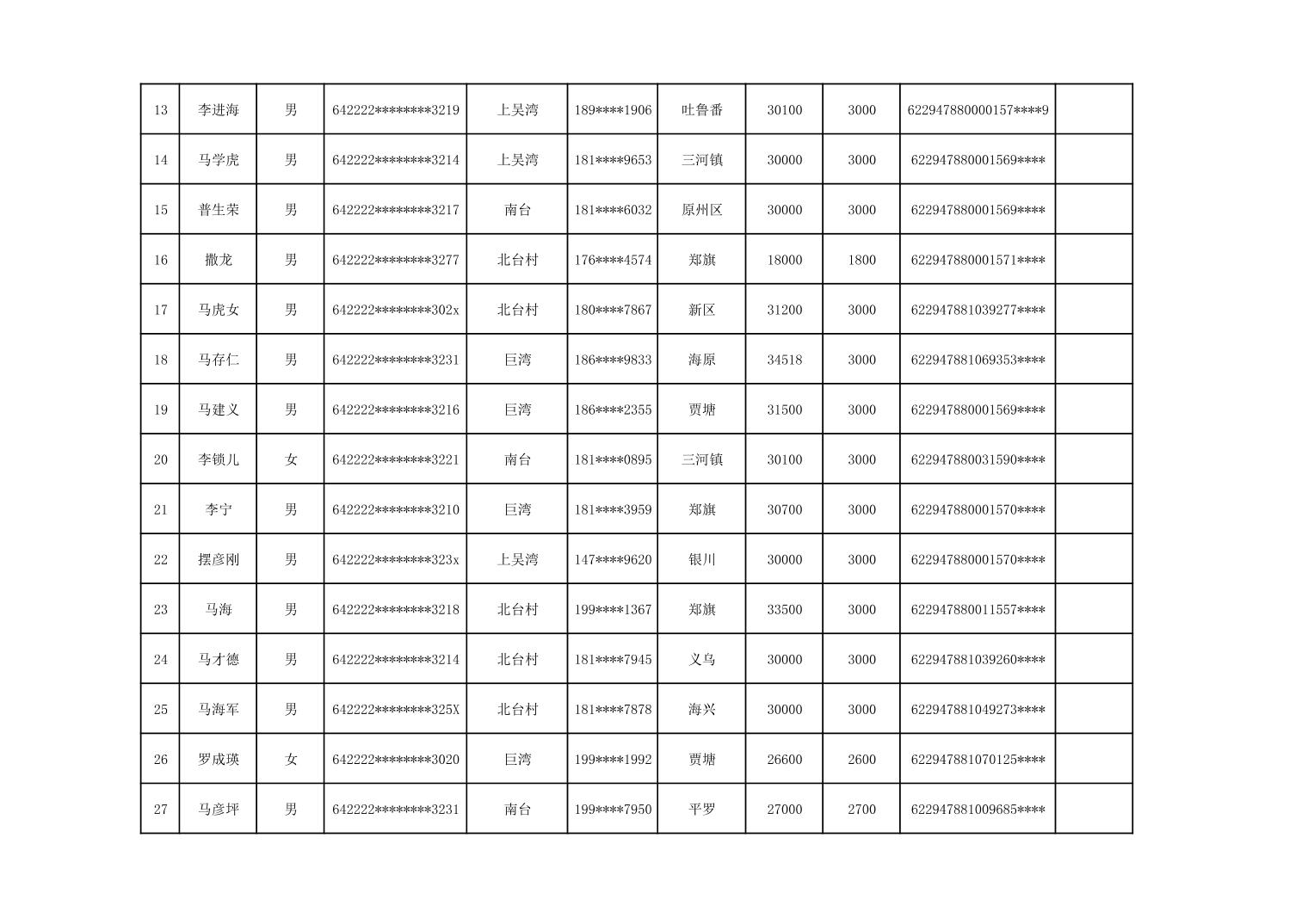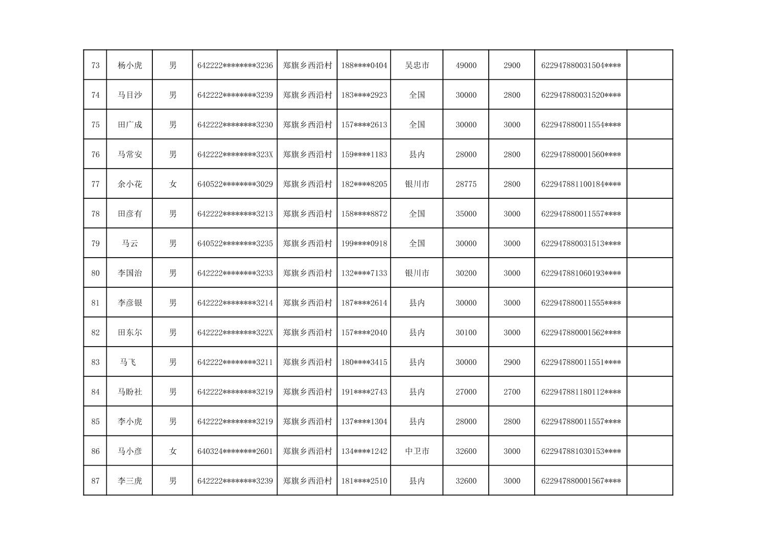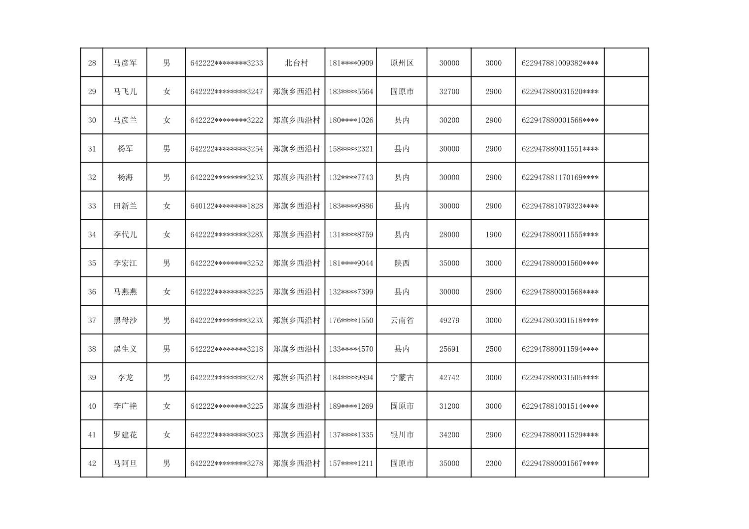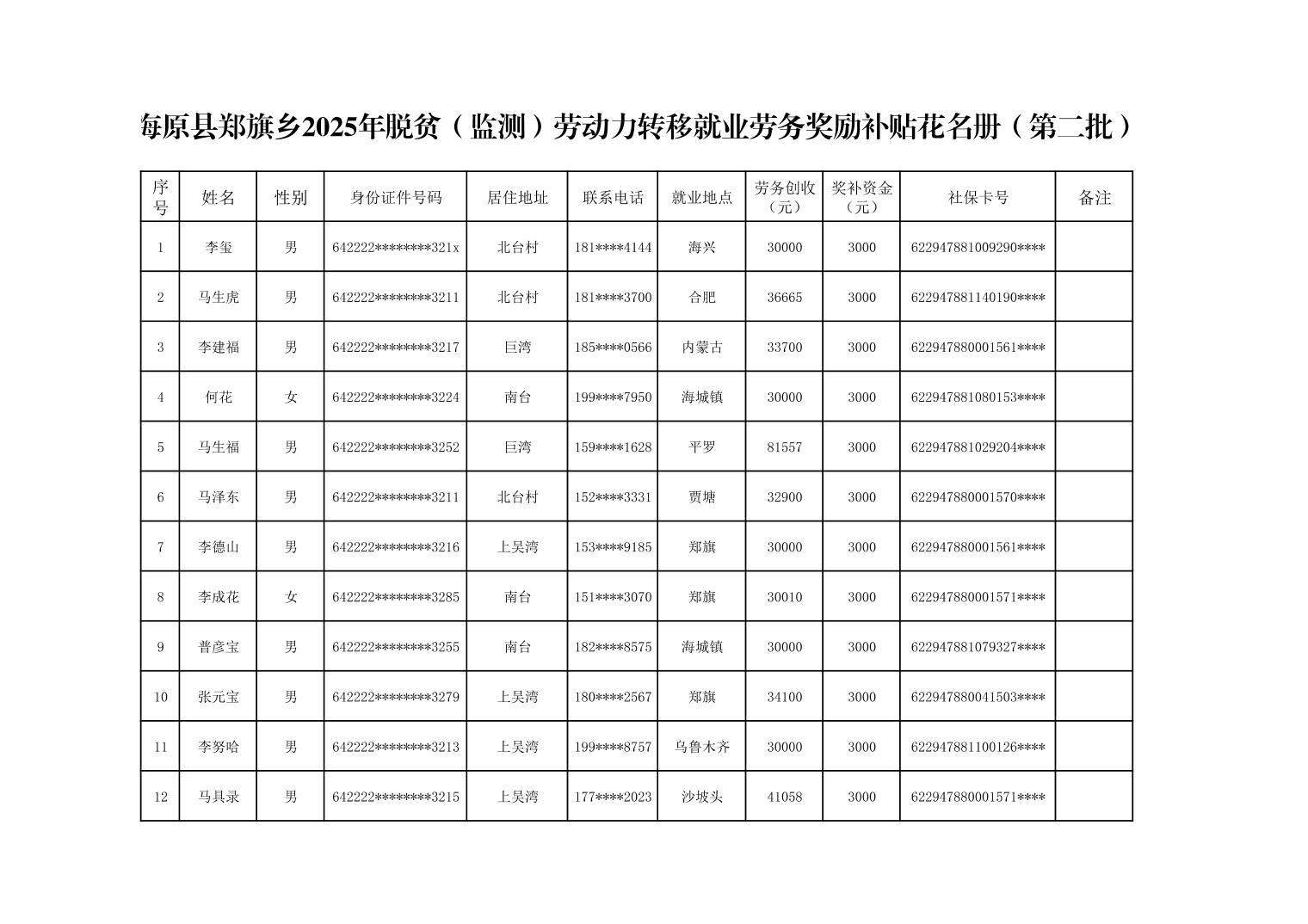 海原县郑旗乡2025年脱贫(监测)劳动力转移就业劳务奖励补贴花名册(第二批)