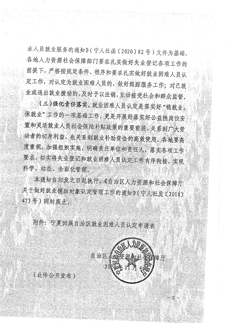 4、残疾人员:指有劳动能力和就业需求且持有残疾证明的人员。认定材料:①《宁夏就业困难人员认定申请表》;②残疾证复印件。(办理程序见文末)