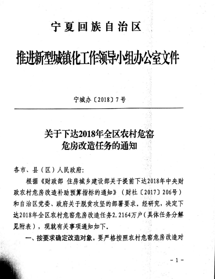 关于下达2018年全区农村危窑危房改造任务的通知