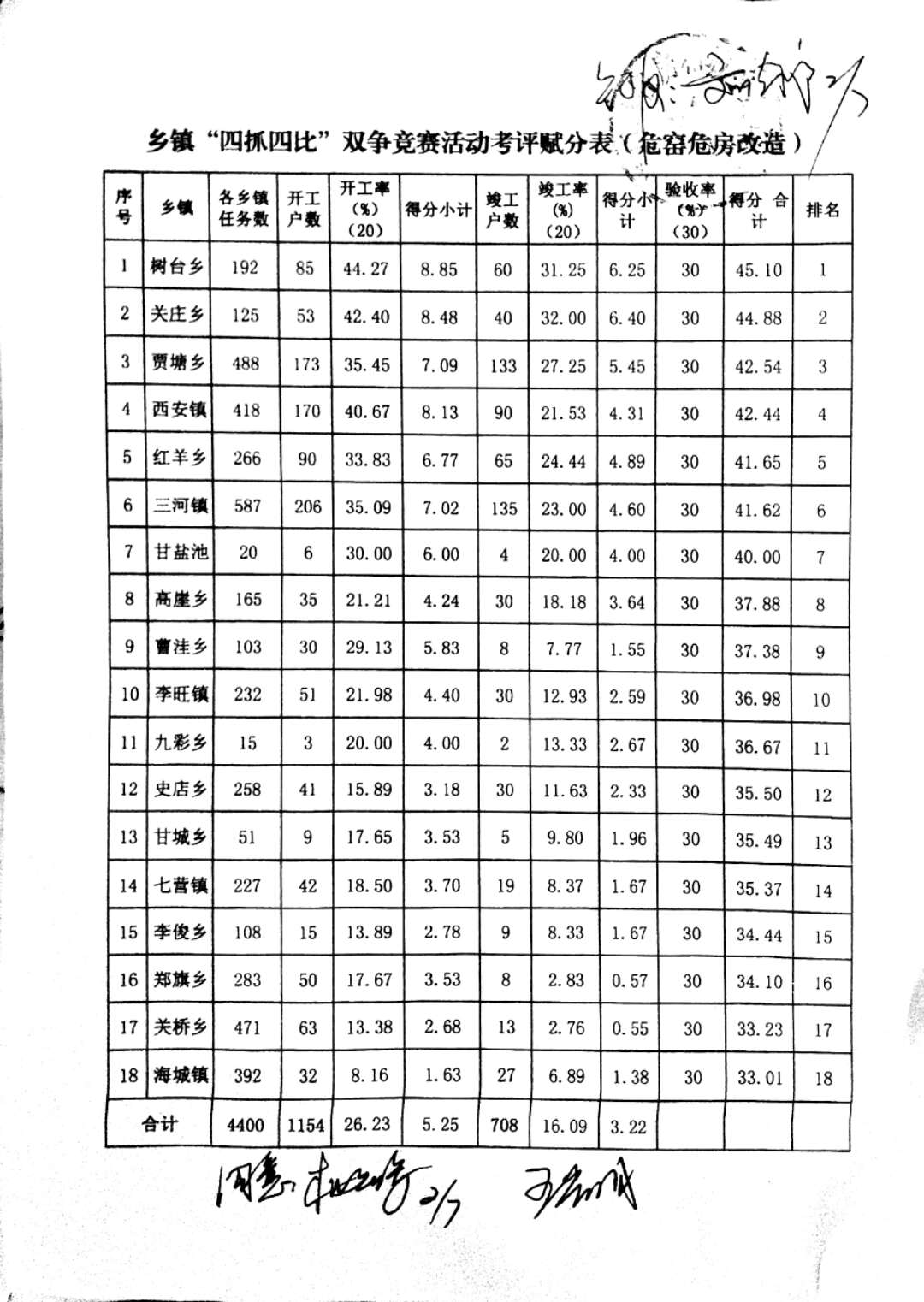乡镇“四抓四比”双争竞赛活动六月份考评赋分表(危窑危房)