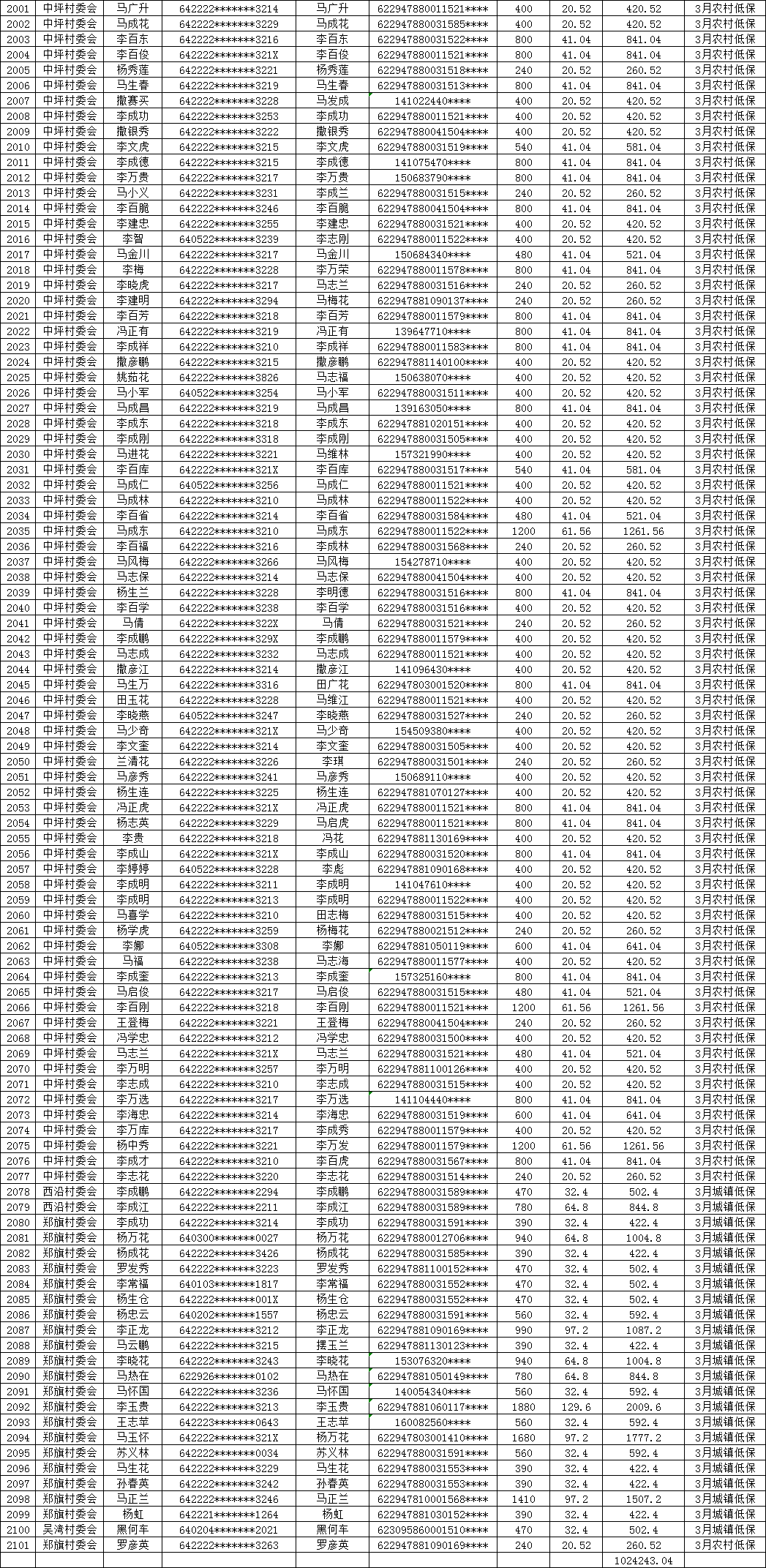 海原县郑旗乡2020年03月农村城市最低生活保障资金发放册
