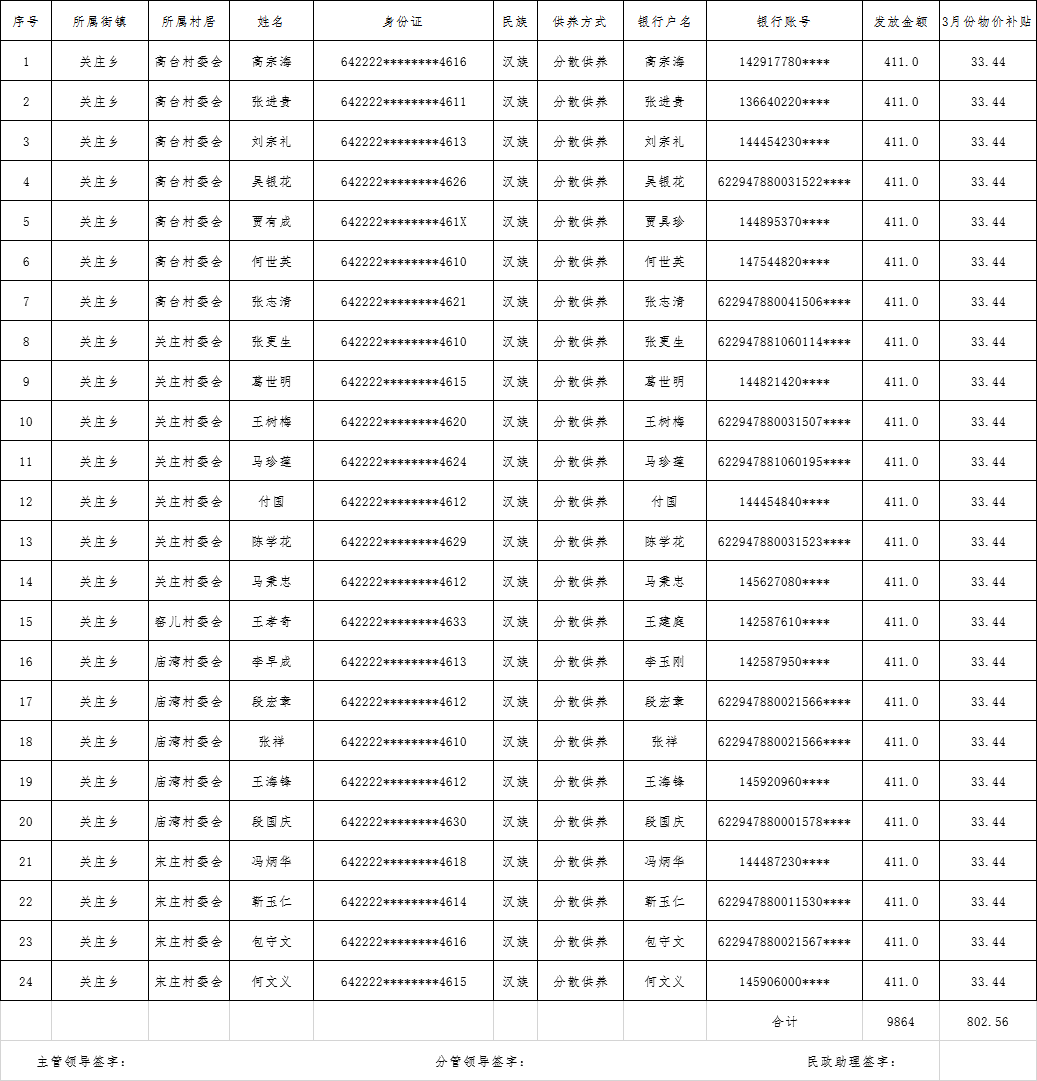 海原县关庄乡2020年05月特困人员供养-分散供养资金发放册
