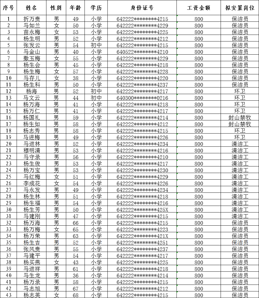 海原县九彩乡发放建档立卡公岗2020年5月份工资花名册