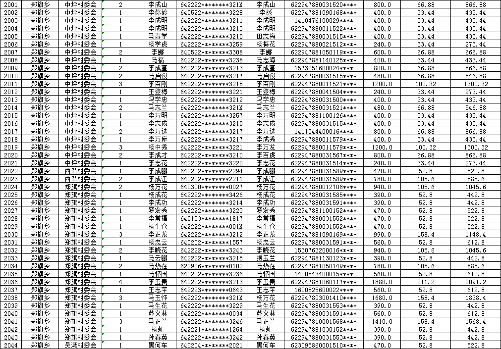 海原县郑旗乡2020年05月农村最低生活保障资金发放册