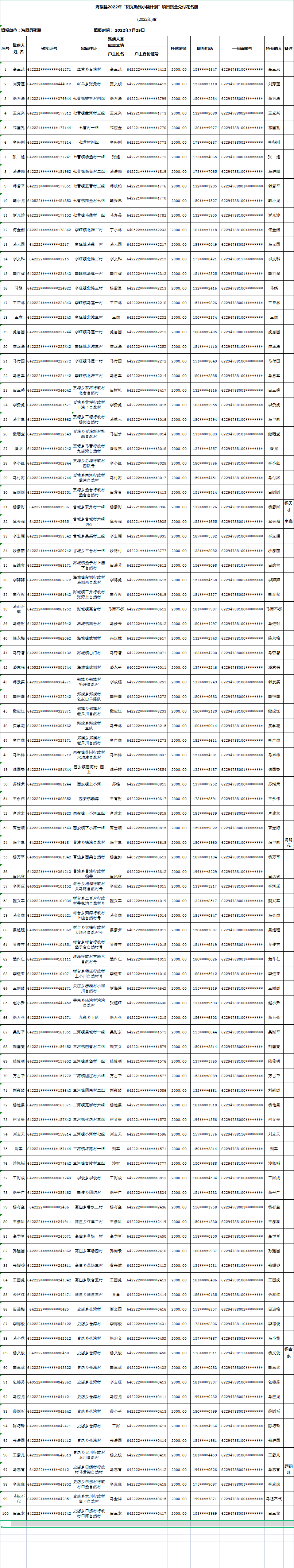海原县2022年“阳光助残小康计划”项目资金兑付花名册