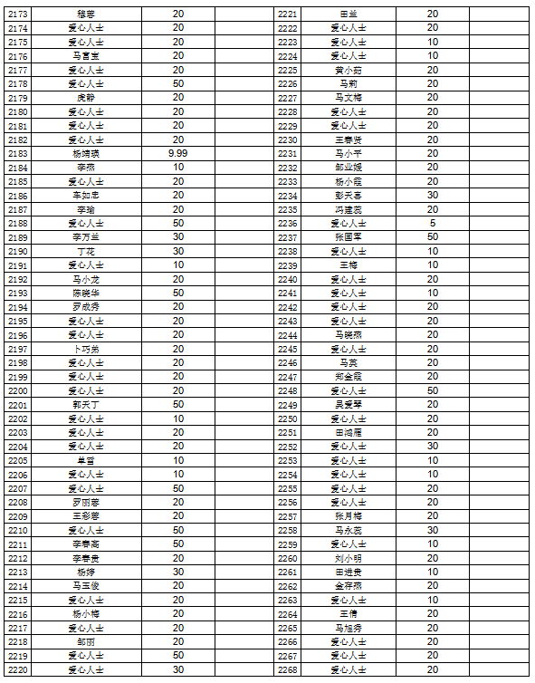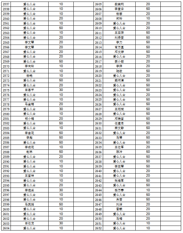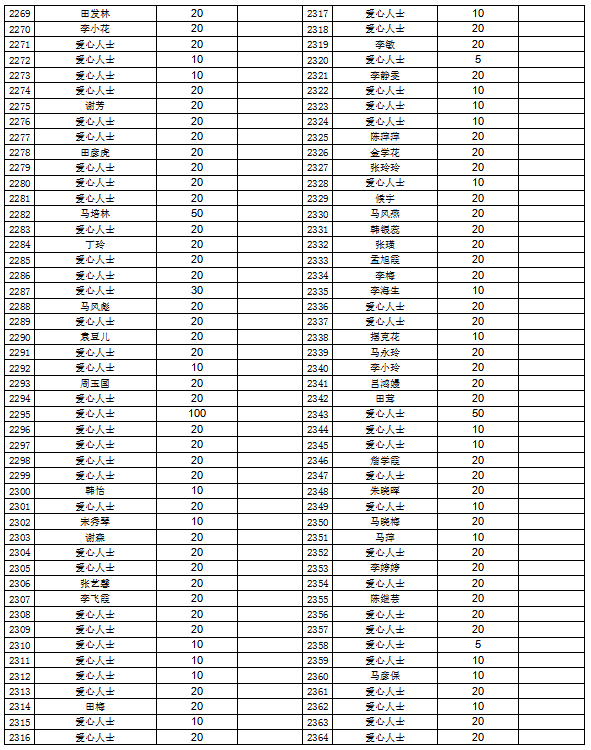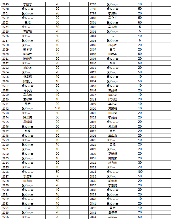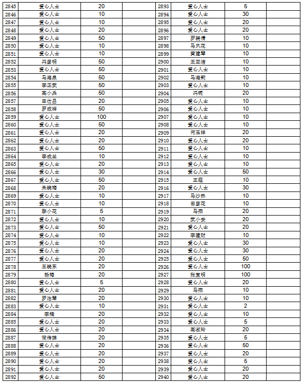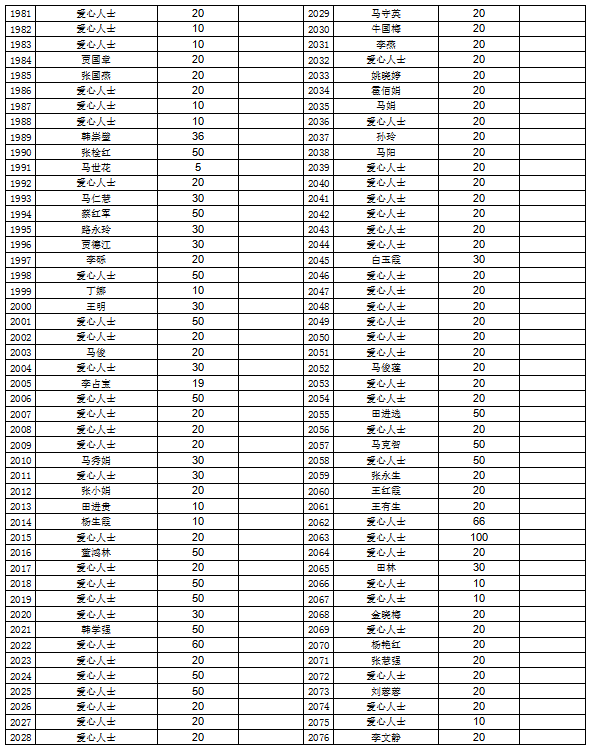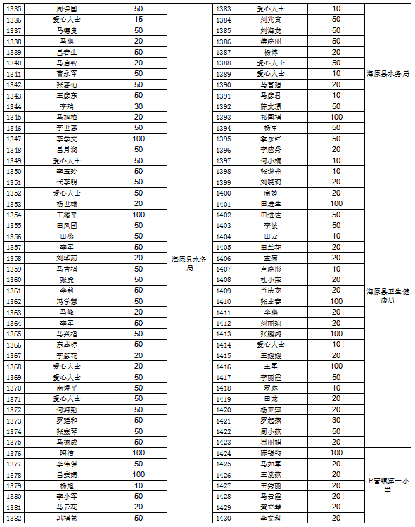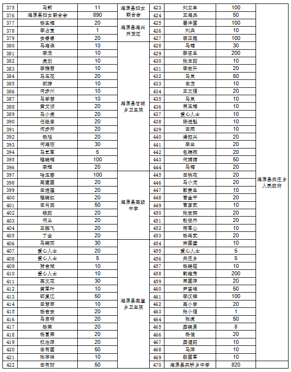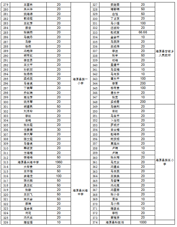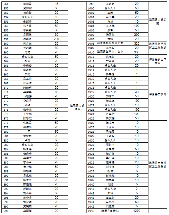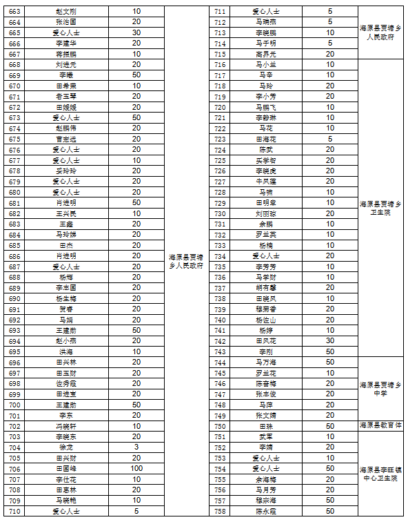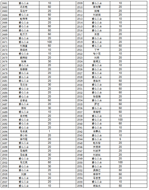 备注:因部分单位干部职工捐款时未注明所在单位,无法归口,为方便统计和公示,全部列入个人及爱心人士进行公示,如对公示内容有异议,请到县红十字会或致电红十字会查询,联系电话:0955-8796777。