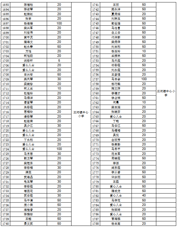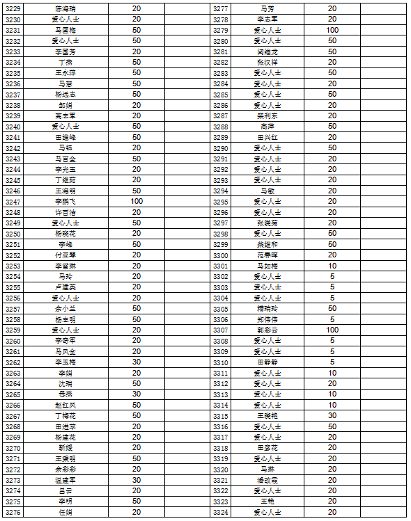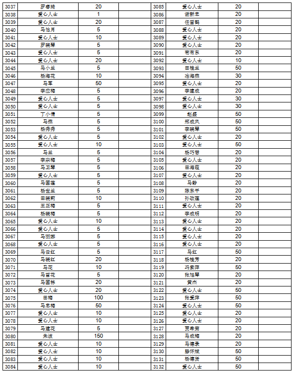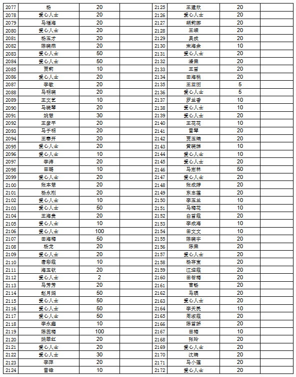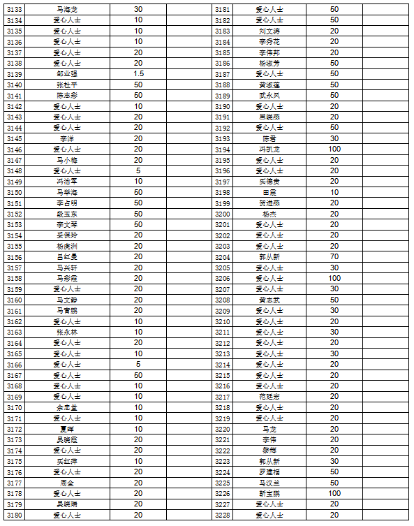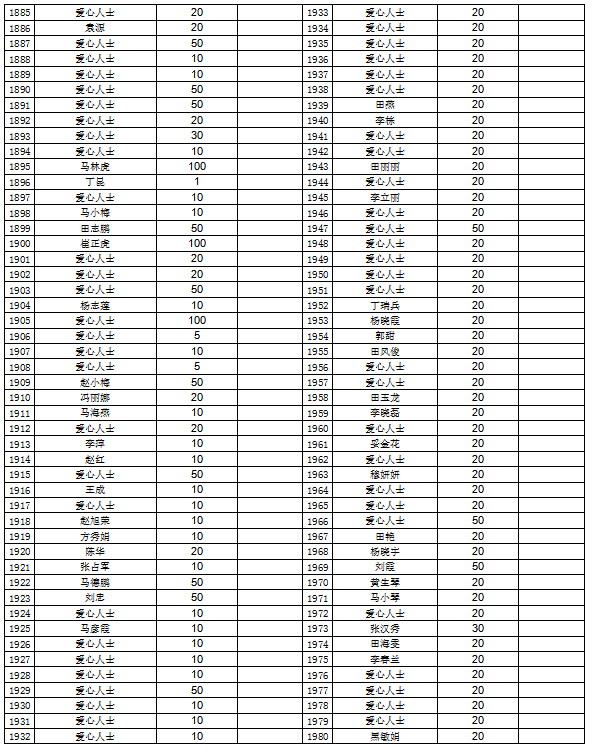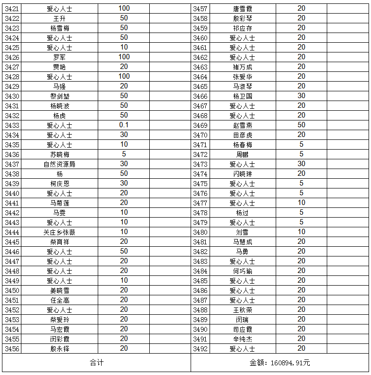 根据县委组织部、县文明办、县红十字会《关于在全县开展“博爱一日捐”慈善募捐倡议活动的通知》文件精神,全县广大干部职工及爱心人士、爱心企业积极参与,踊跃捐款。活动期间,共募集善款160894.91元。现将具体捐款情况公示如下: