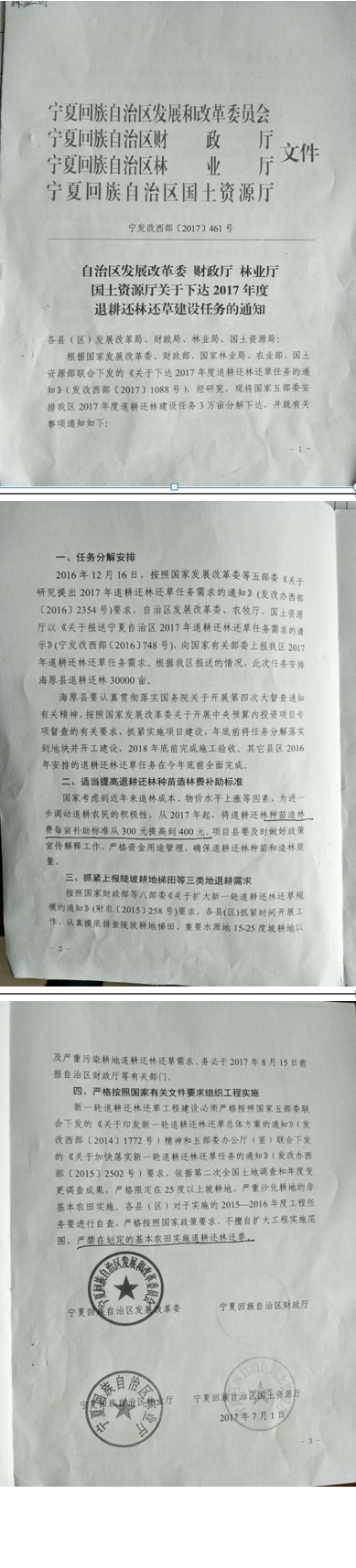 自治区关于下达2017年度退耕还林还草建设任务的通知