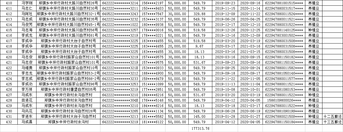 海原县郑旗乡农行扶贫小额贷款贴息明细(2020年一季度)