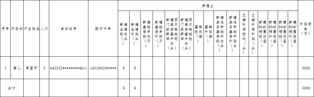 海原县关庄乡窑儿村2020年边缘户养殖业产业验收补贴花名册