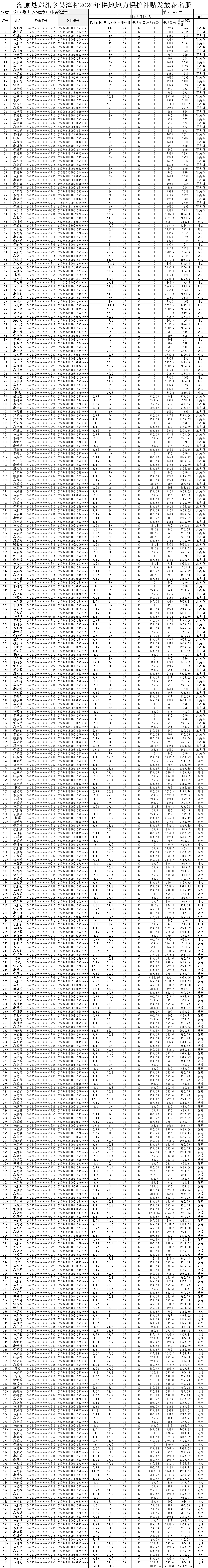 海原县郑旗乡吴湾村2020年耕地地力保护补贴发放花名册