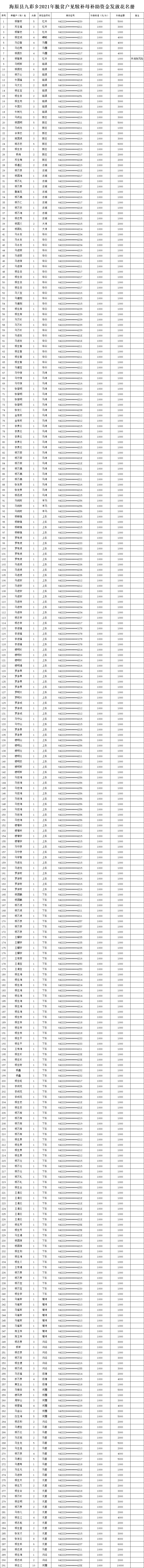 海原县九彩乡2021年脱贫户见犊补母补助资金发放花名册
