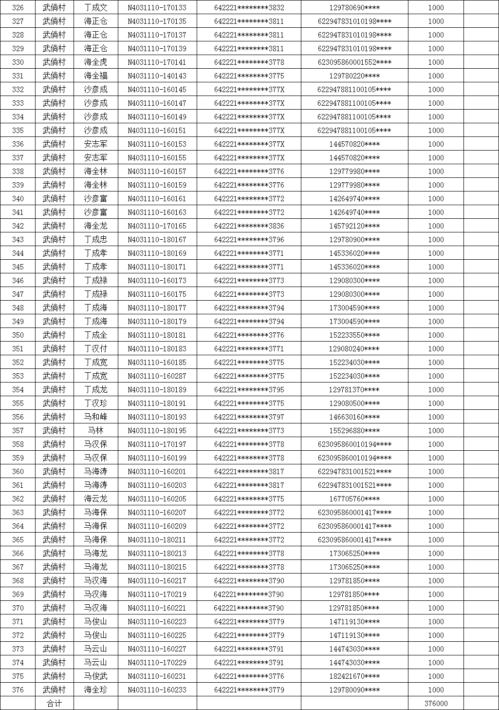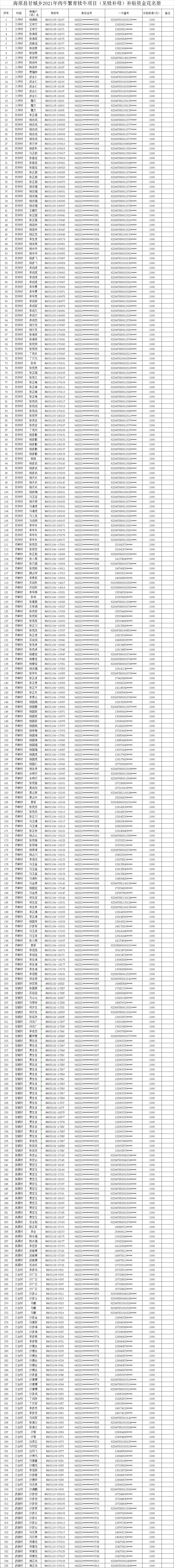 海原县甘城乡2021年肉牛繁育犊牛项目(见犊补母)补贴资金花名册