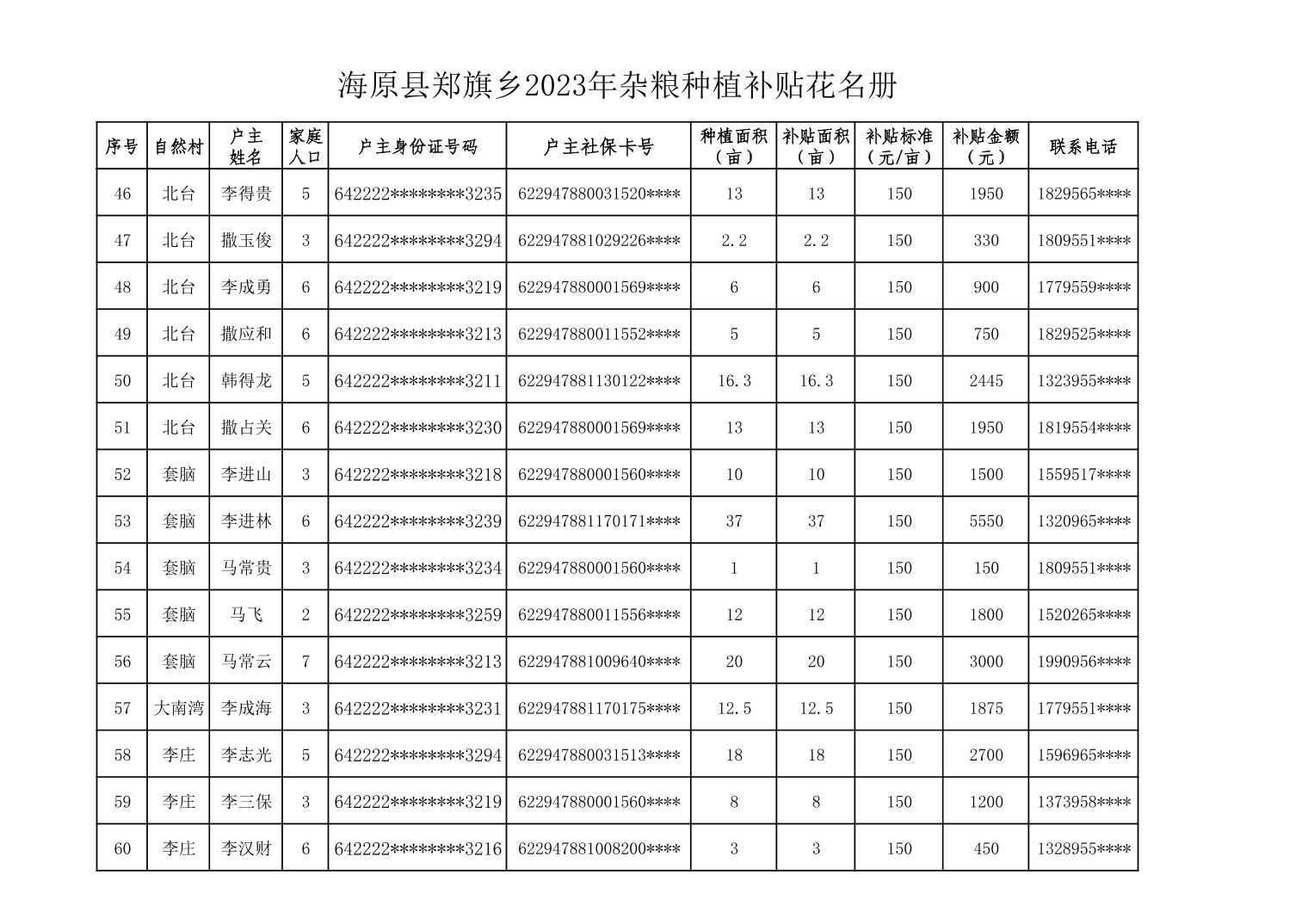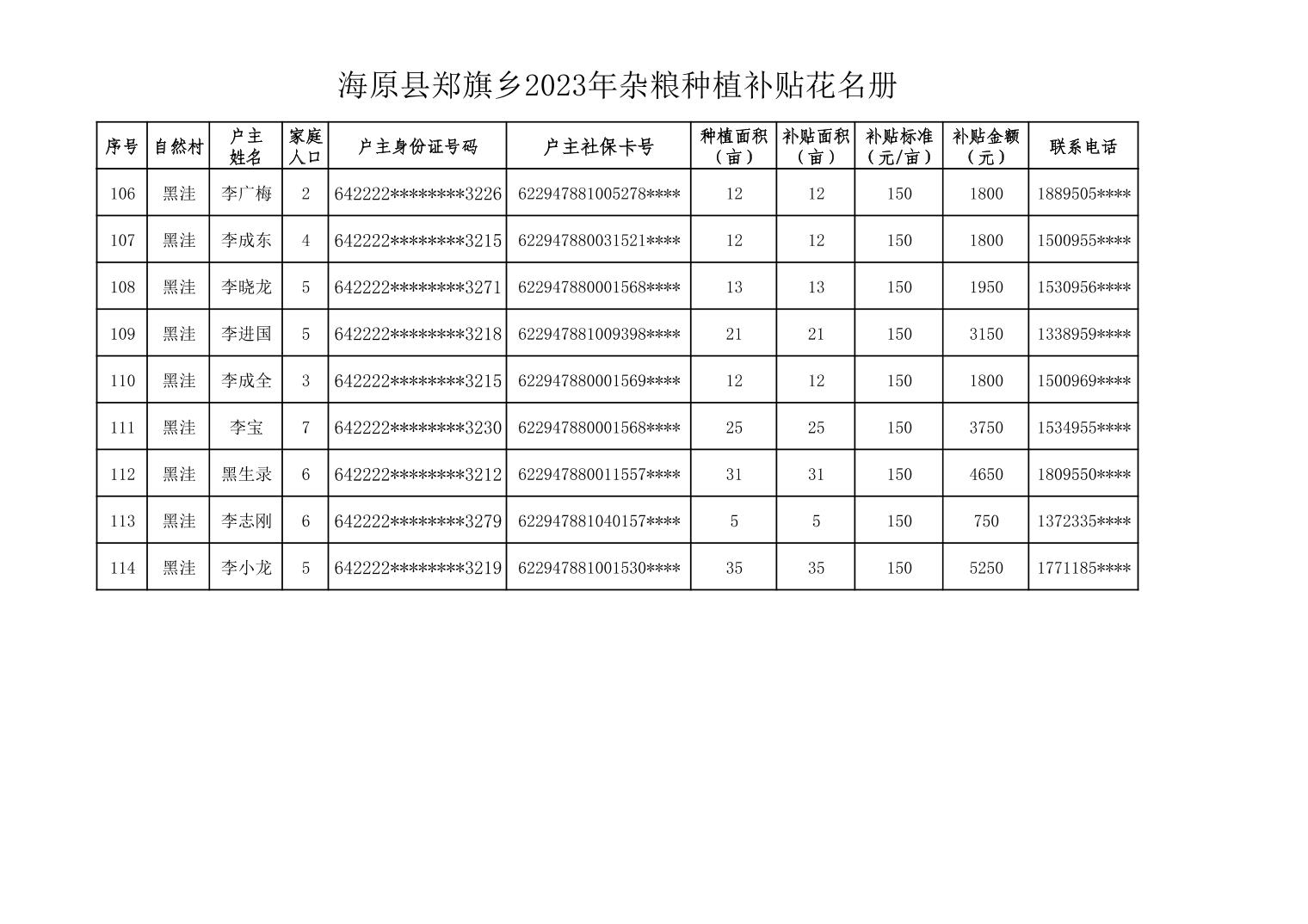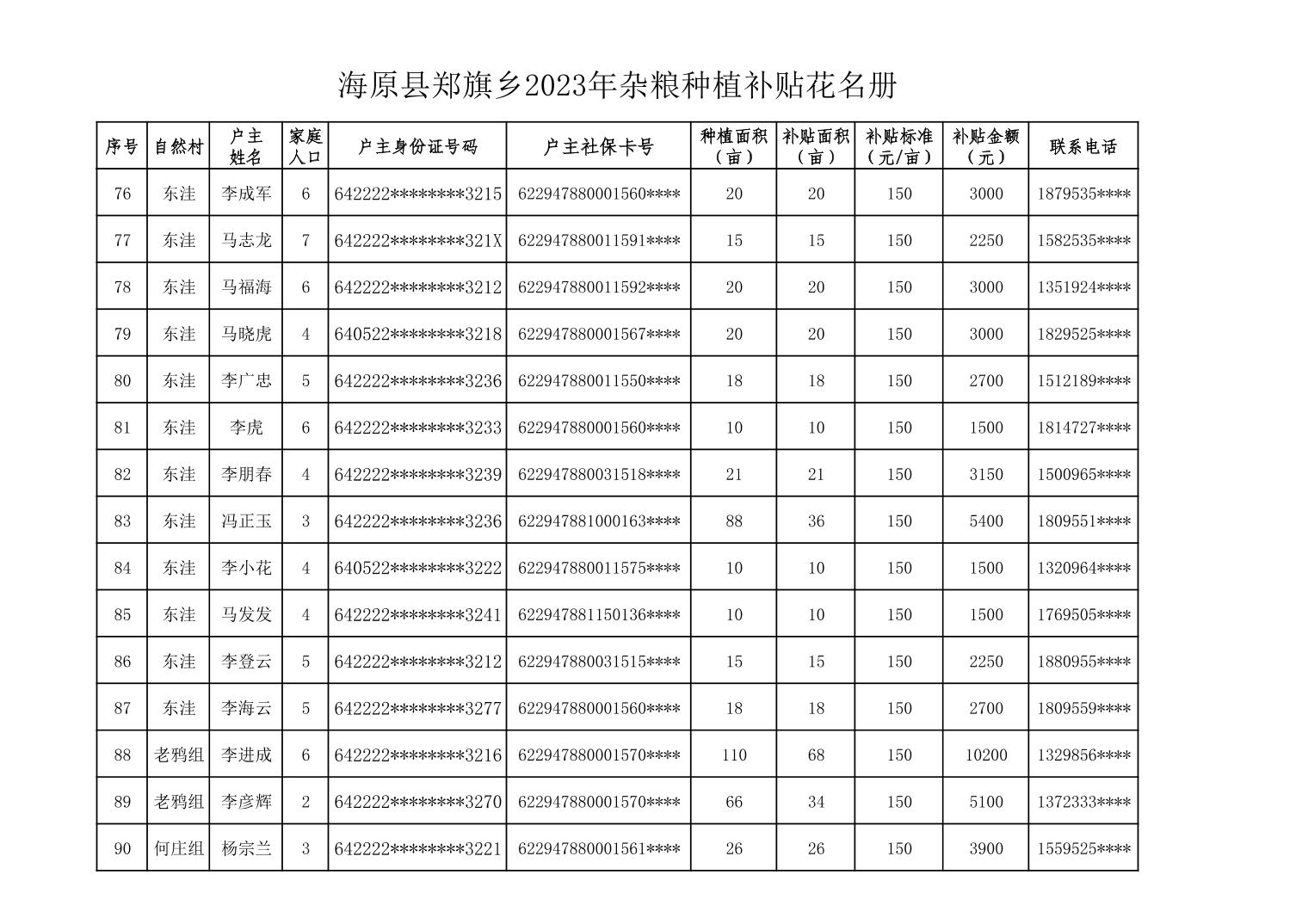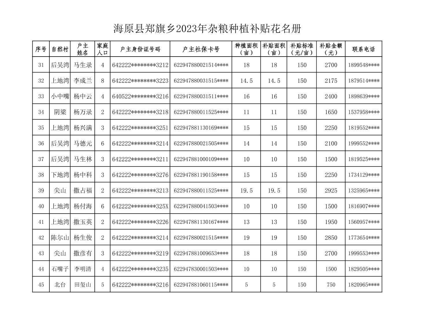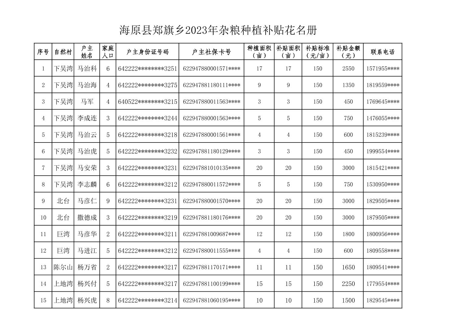 海原县郑旗乡2023年杂粮种植补贴花名册