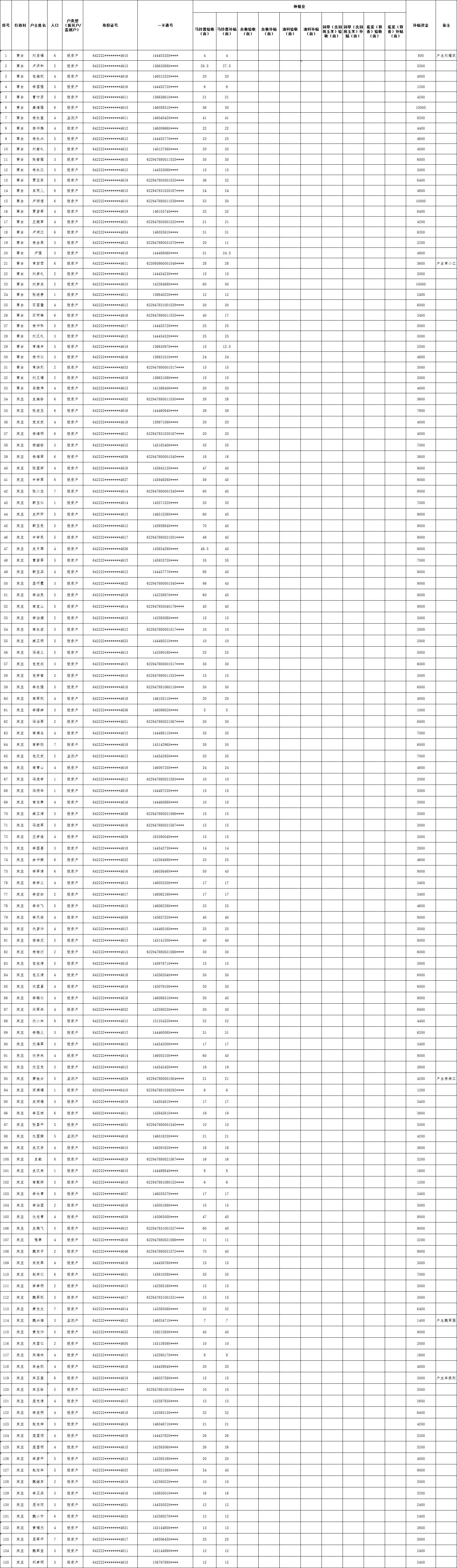 海原县关庄乡2024年种植业产业验收补贴公示花名册(第一批)