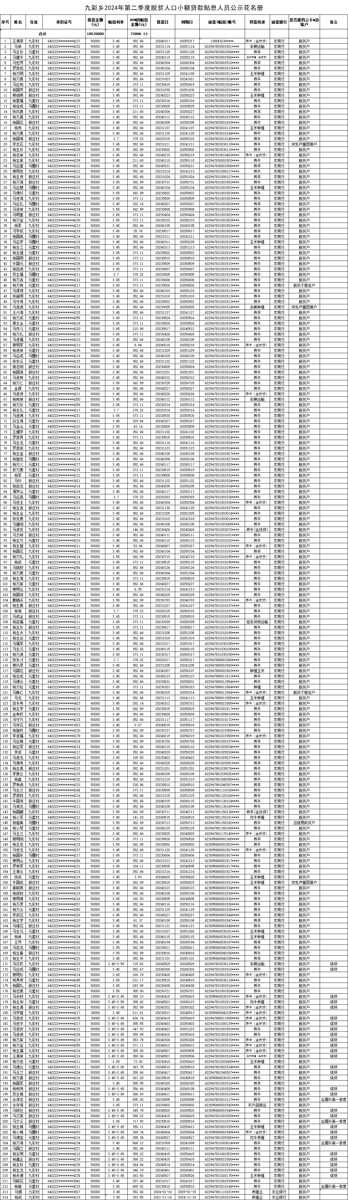 九彩乡2024年第二季度脱贫人口小额贷款贴息人员公示花名册