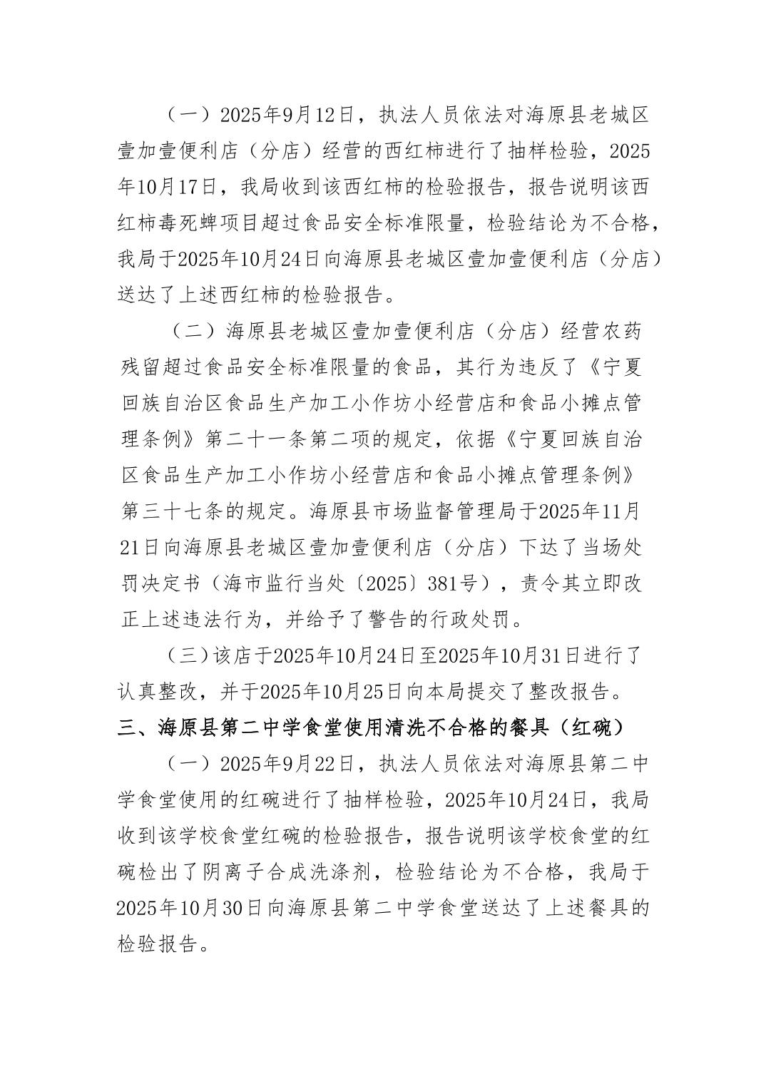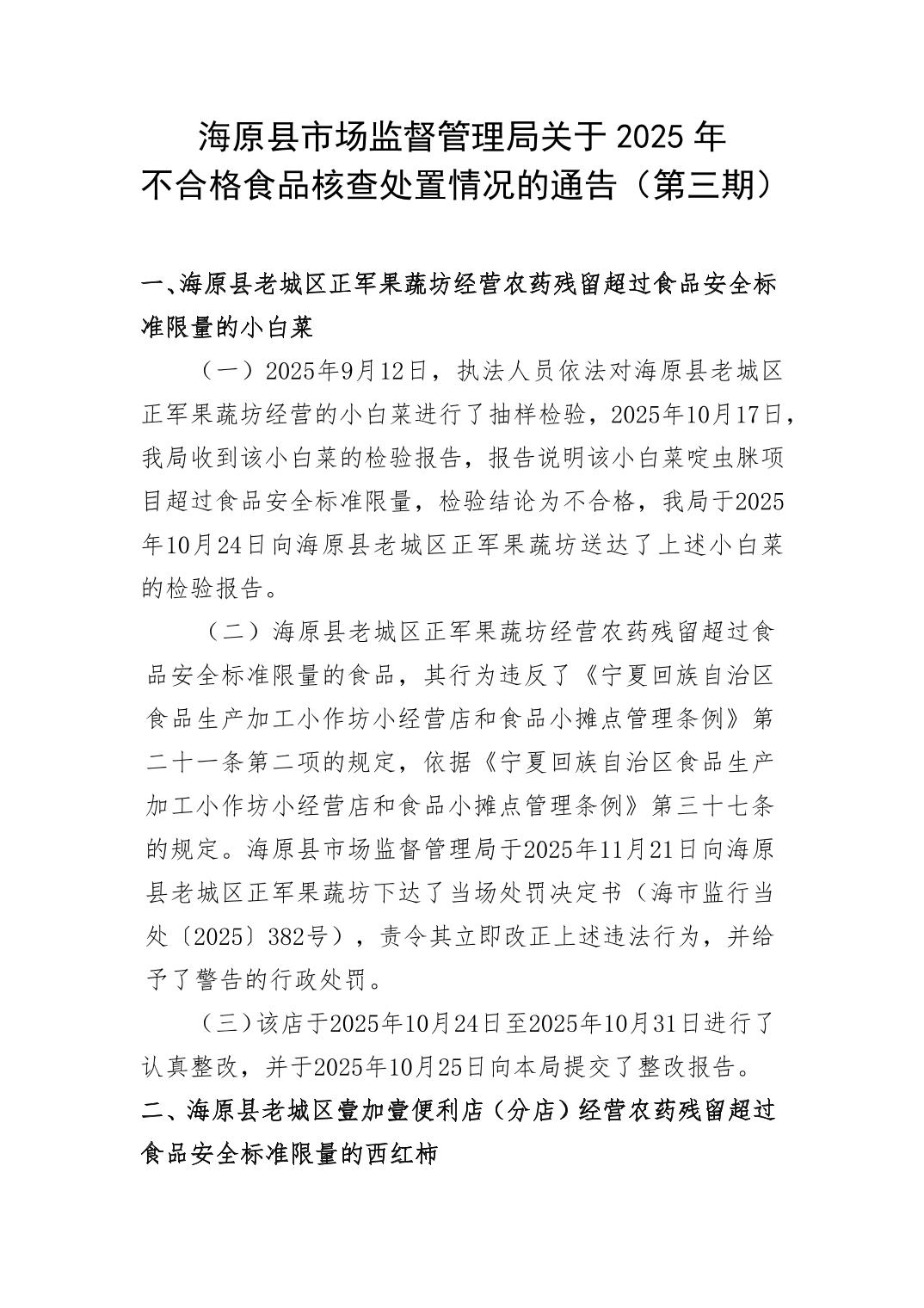 海原县市场监管局关于2025年不合格食品核查处置情况的通告(第3期)