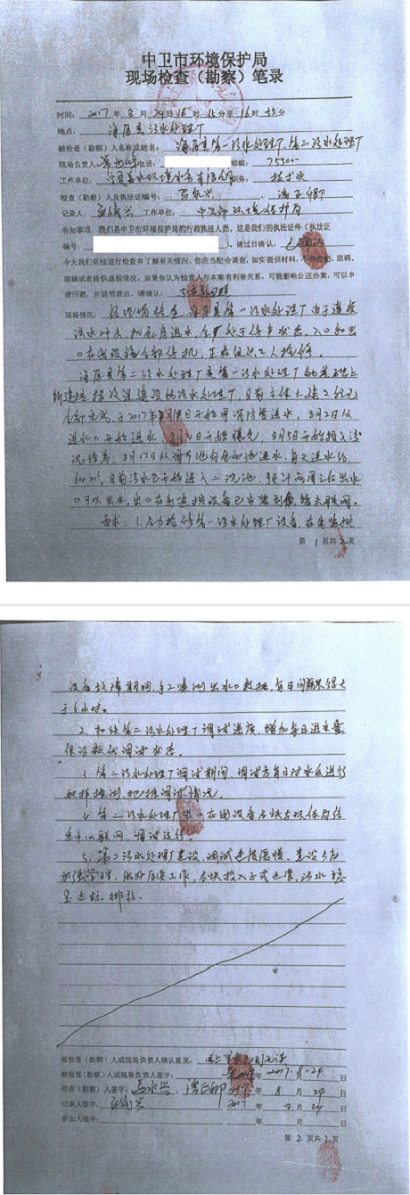 关于海原县垃圾污水处理有限公司2017年8月的污染源现场监察记录