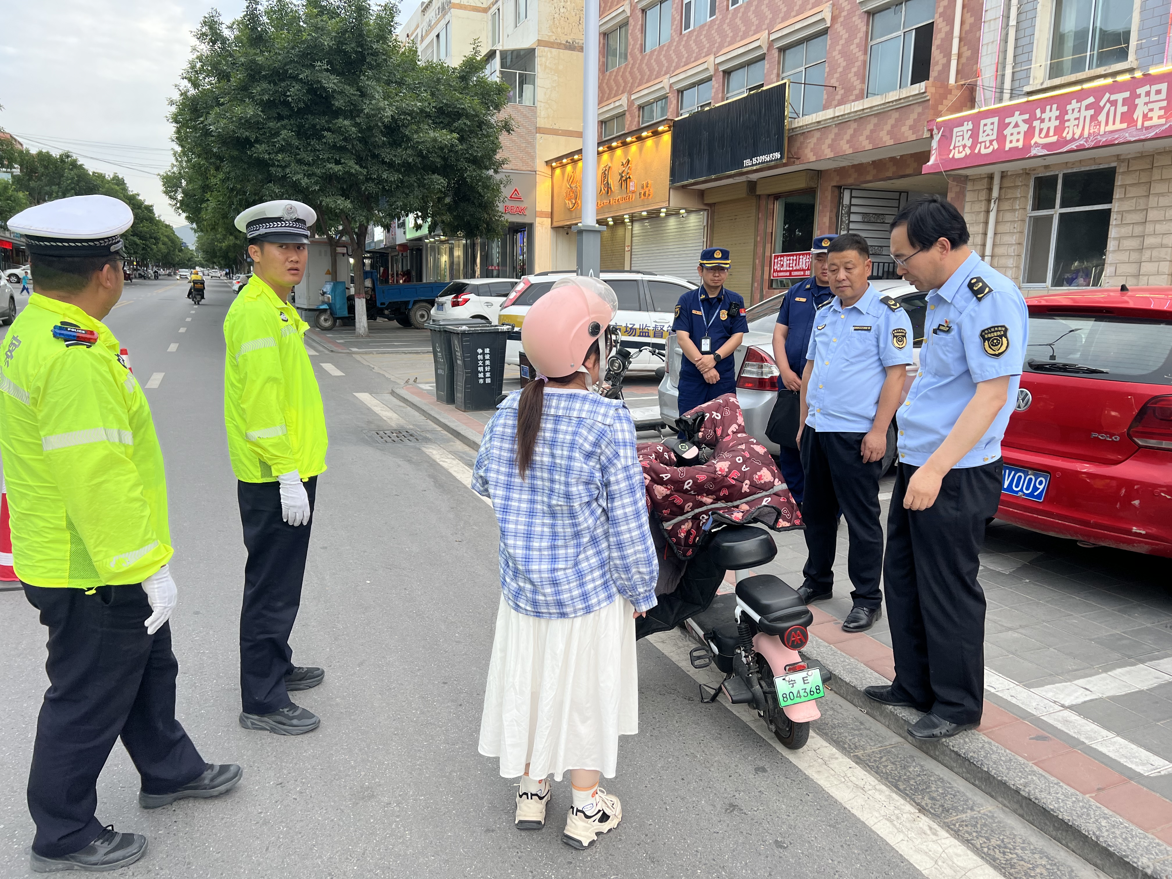 检查组共16人分为2组,分别对海原县城和海兴开发区进行专项检查。通过随机抽查方式,以车辆登记、头盔佩戴、违法改装等内容为重点,对路面行驶的电动车开展了联合检查。共抽查电动车30余辆,未发现涉及增加电池容量、拆除限速器等非法改装、拆装问题。