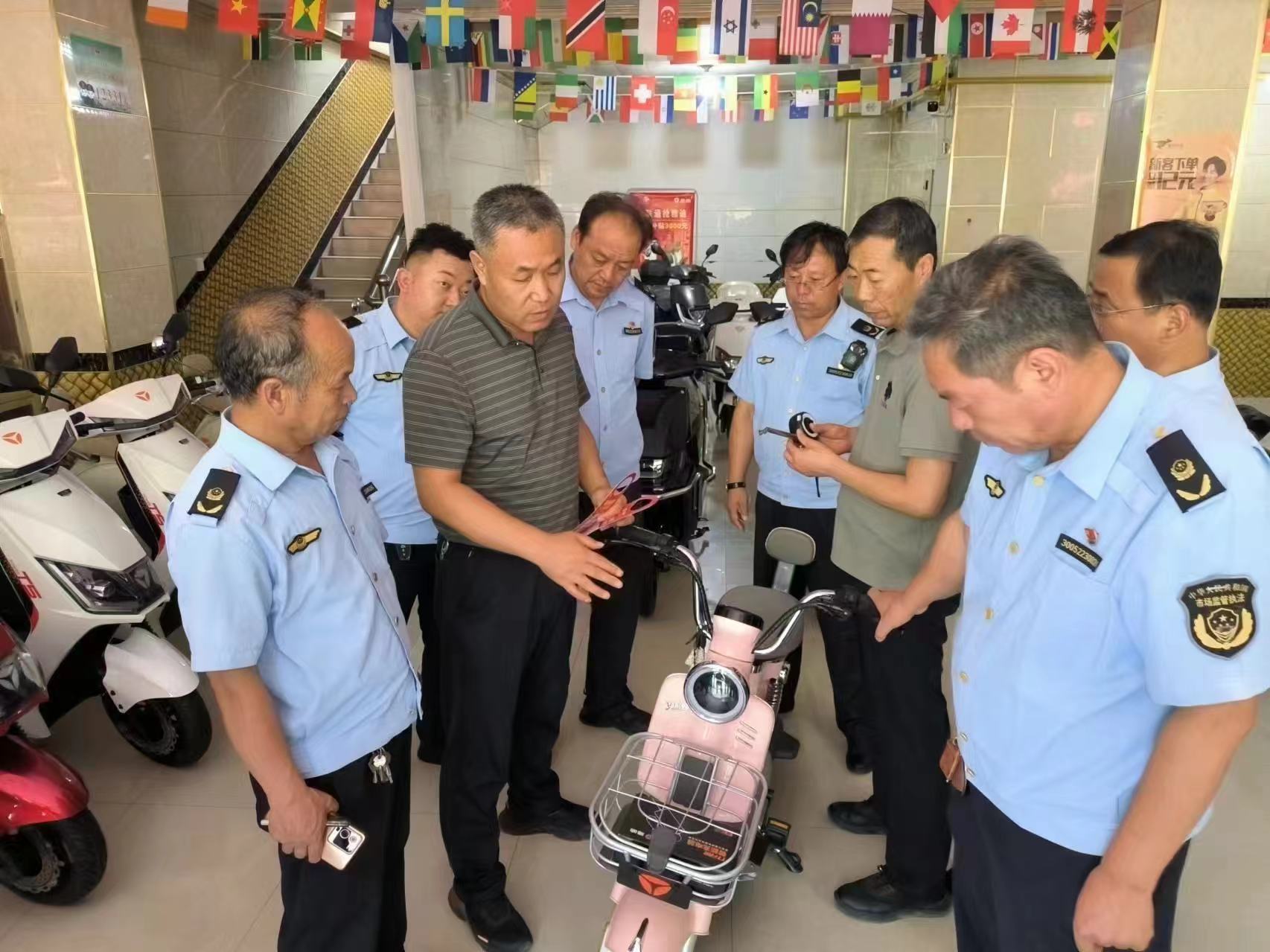 指导组深入我县电动自行车经营户进行检查,现场结合电动自行车及配件强制性国家标准,向执法人员就如何发现并确认销售尺寸不符合国家强制性标准的电动自行车等违法行为,以及如何规范立案、取证、行政处罚等案件查办流程进行了详细深入的讲解,提高发现问题、解决问题的能力水平,避免“走过场”式检查、“雁过留痕”式执法,切实做到有法必依、有违必治、有案必查。