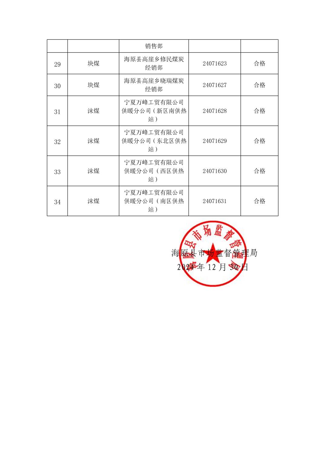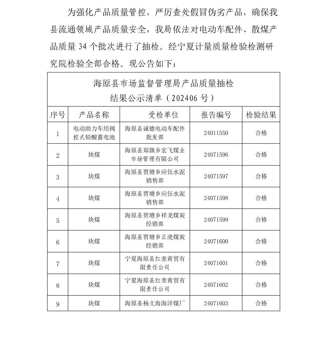 海原县市场监督管理局产品质量抽检结果公告(第202406期)