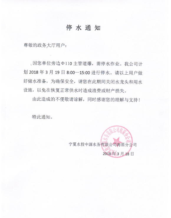 政务大厅停水通知