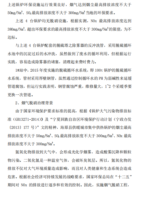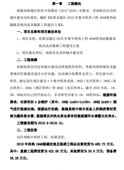 关于海原县2018年城区集中供热1号、4号供热站脱硫塔系统改造及脱销工程建设方案
