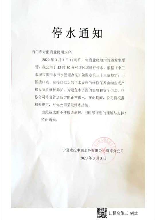 西门寺对面商业楼停水通知