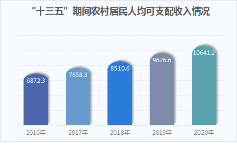 图1 “十三五”期间农村居民人均可支配收入总体情况图(单位:元)