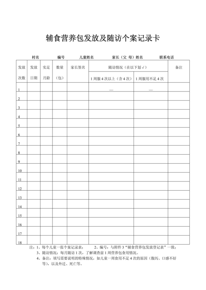 注:乡镇卫生院发货到村医时填写此表。此表一式三联,一联村医保存,一联乡镇卫生院保存,一联县(区)妇幼保健机构保存