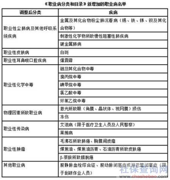 关于职业性尘肺病及其他呼吸系统疾病的调整