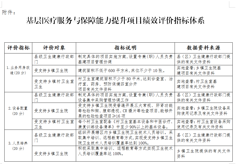 附件:自治区基层医疗服务与保障能力提升项目绩效评价指标体系