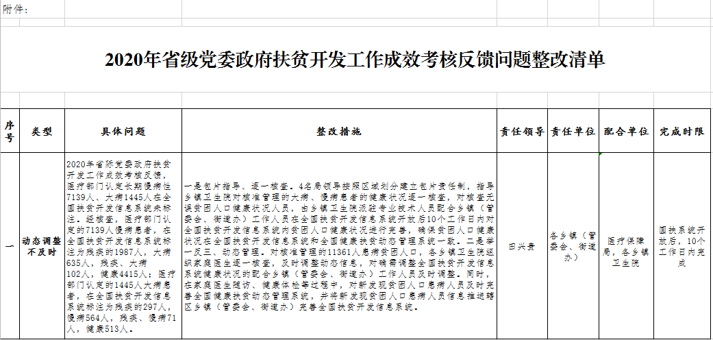 附件:2020年省际党委政府扶贫开发工作成效考核反馈问题整改清单