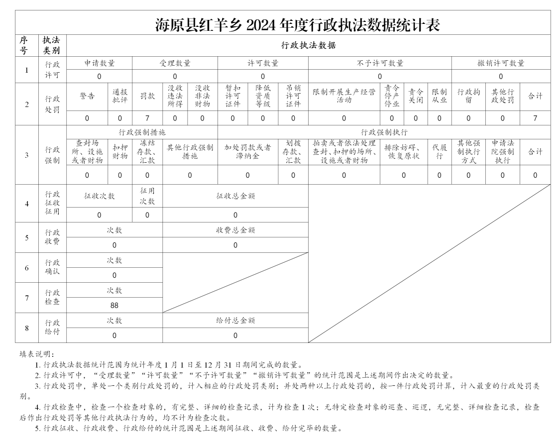 海原县红羊乡2024年度行政执法数据统计表