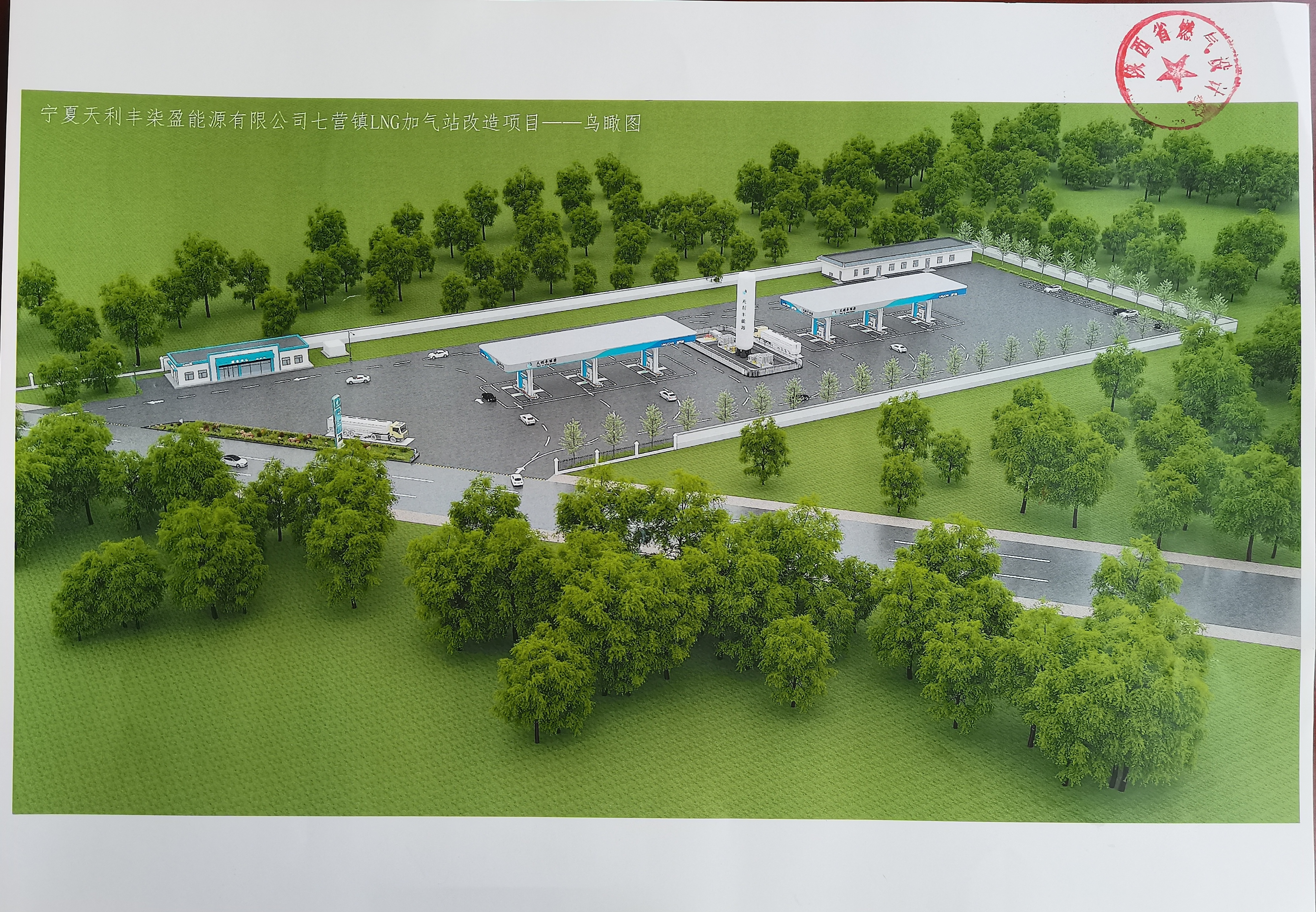 宁夏天利丰柒盈能源有限公司七营镇LNG加气站改造项目位于海原县七营镇七营村,建设内容为:建设60立方米LNG储罐1台,工艺设备一套,加气罩棚2座,每座罩棚投影面积384㎡、建筑面积119.04㎡,新建辅助用房299.09㎡,同步建设相应的供电、控制通信、给排水、消防、暖通等配套工程设施。