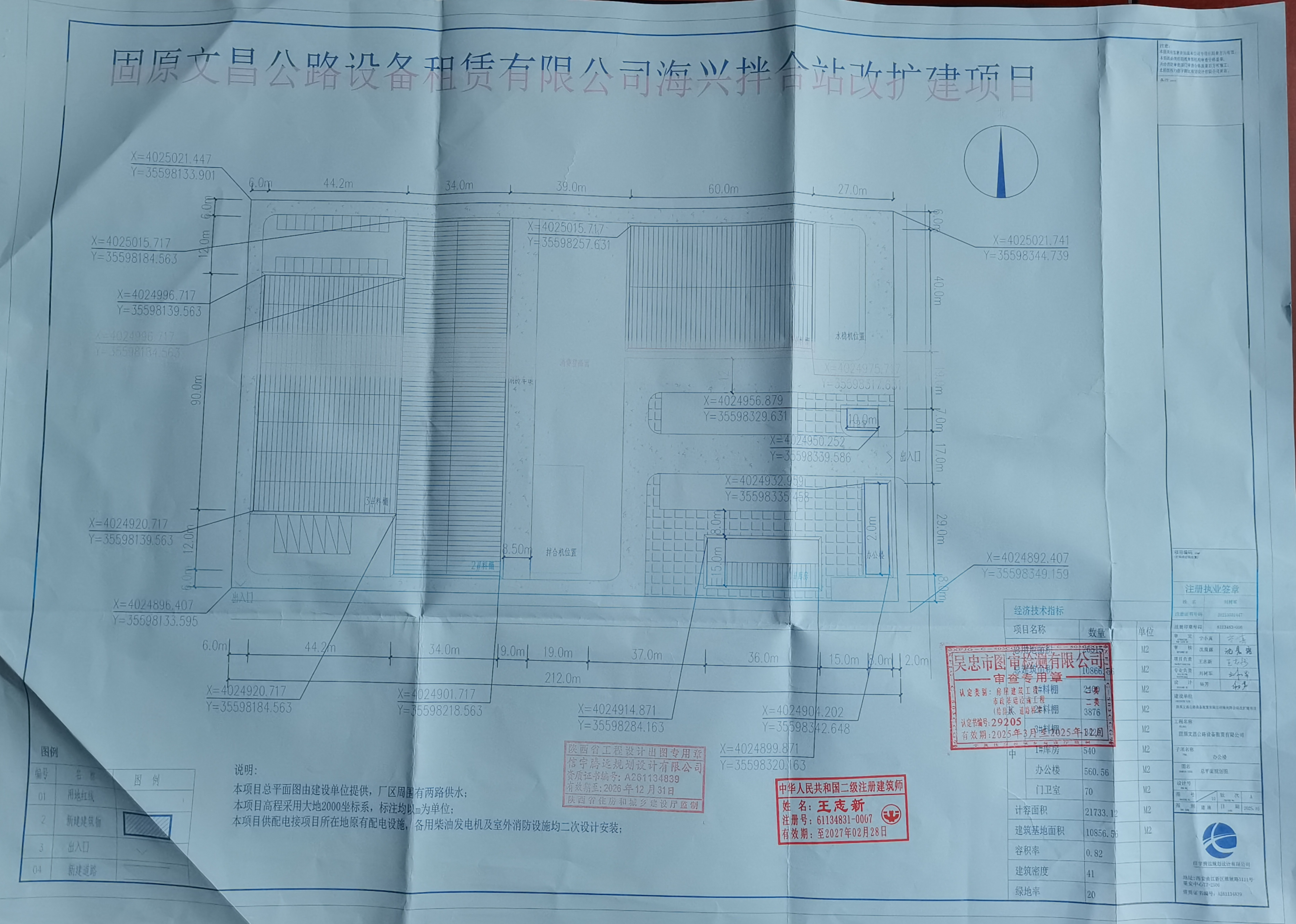 固原文昌公路设备租赁有限公司海兴拌合站改扩建项目位于海原县海兴开发区黑城安置新村南侧,建设内容为:总建筑面积10866.56㎡(其中:1#料棚2400㎡,2#料棚3876㎡,3#料棚3420㎡,1#库房540㎡,门房70㎡,办公楼560.56㎡.)。