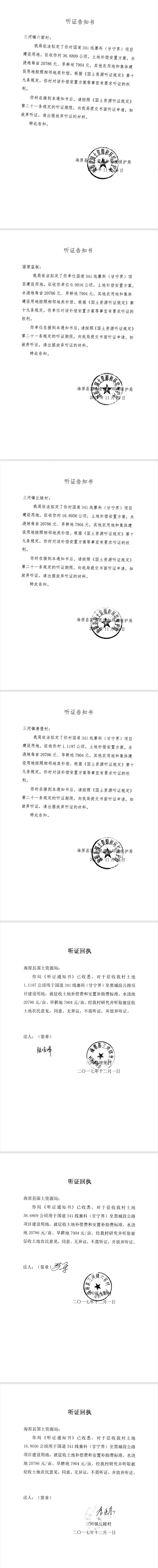 海原县国道341线三河至海兴开发区段公路听证告知书、听证回执