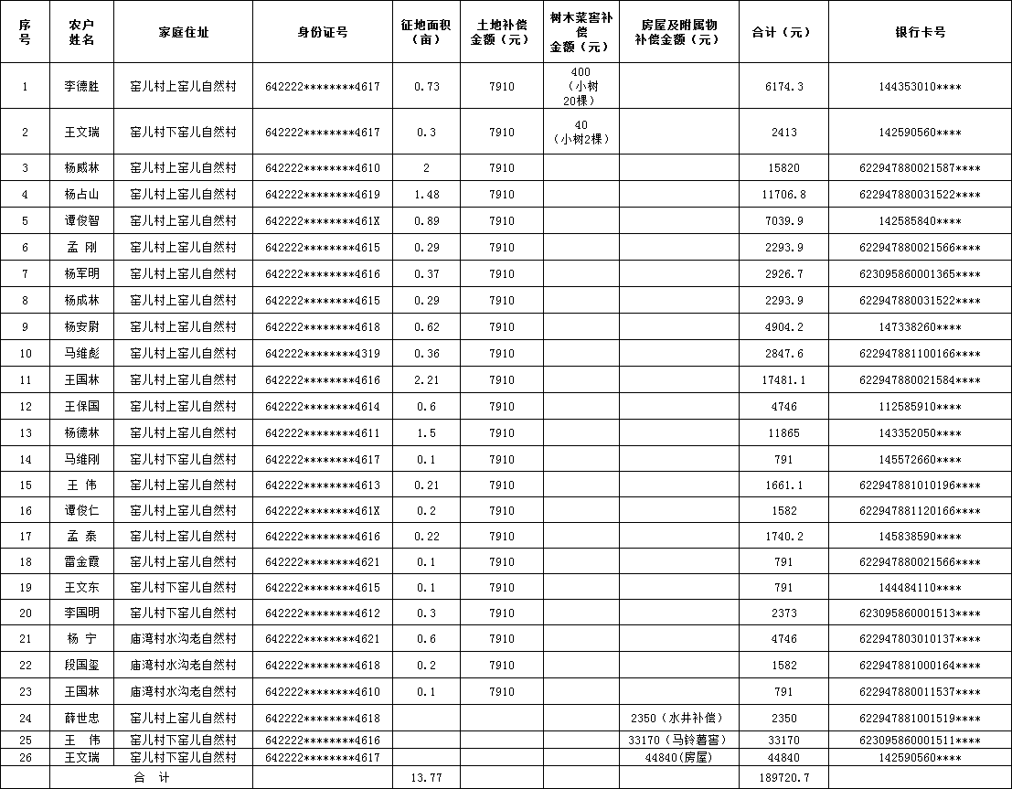 海原县关庄乡S311线李俊至关庄公路建设占用土地房屋及附属物征地补偿花名册(第五批)