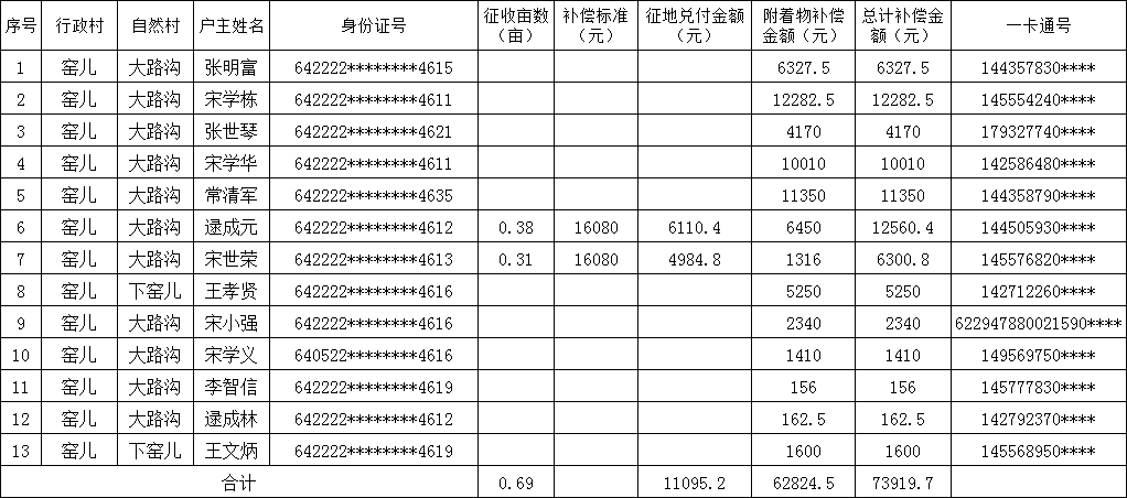 省道S205线关庄段公路项目建设永久性土地征收及地上附着物补偿花名册(第二批))