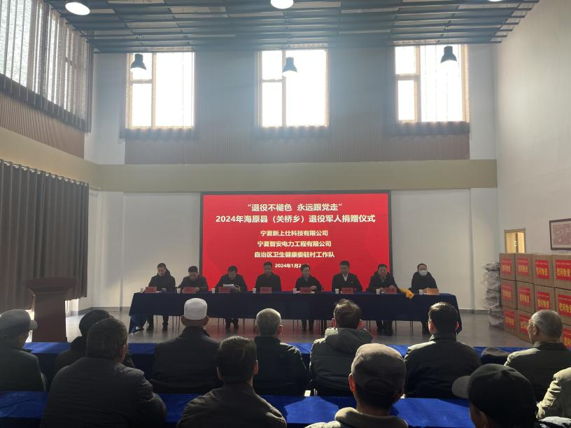 为关心关爱退役军人,用心帮助退役军人解难题、办实事、提升广大退役军人获得感、幸福感、荣誉感。1月24日,海原县退役军人事务局联合关桥乡党委、政府及自治区卫生健康委驻村工作队,对接宁夏智安电力工程有限公司和新上仕(宁夏)科技有限公司两家爱心企业举行“退役不褪色 永远跟党走”2024年海原县(关桥乡)退役军人慰问物资捐赠仪式。活动在海原县(关桥乡)退役军人思想政治教育基地举行,县人民政府副县长马海燕出席活动并致辞。县退役军人事务局局长田波和关桥乡党委书记田兴明、乡长罗成玉等参加活动。